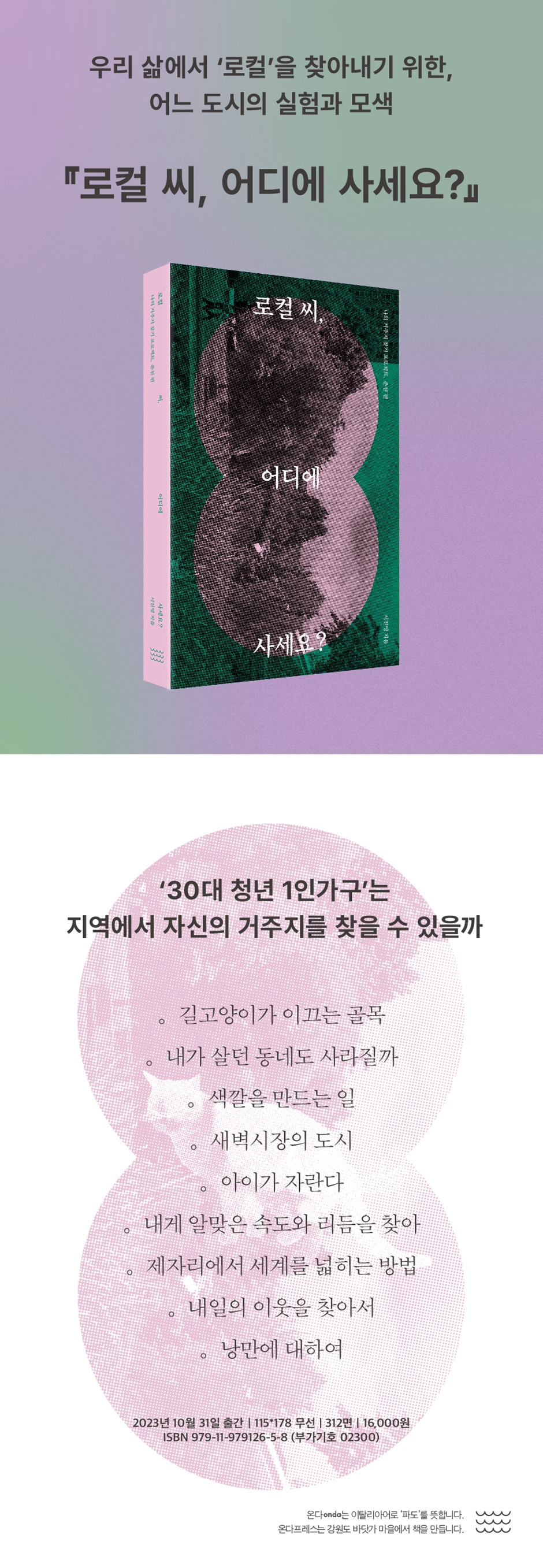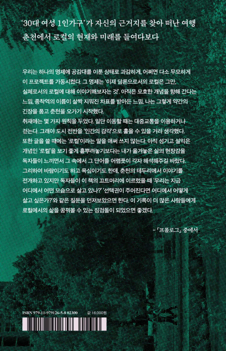 이 질문을 던지기 전에 ‘과연 로컬이란 무엇인가’ 근 10여 년간 한국의 지역 정책을 이끄는 말은 단연 ‘로컬’이다. 기존의 지역 정책이 균형발전에 맞춰져 있었다면, 현재의 로컬 담론은 지역 골목 상권의 부흥, 수도권 청년의 이주와 창업을 염두에 둔 전방위적 지역 경제 재구성 전략이라 할 수 있다. 다만 이 담론이 ‘로컬 비즈니스’ ‘로컬 파이오니어’ ‘로컬 크리에이터’라는 여러 구호를 만들어낸 것에 비해 과연 무엇을 실질적인 성과로 남겼는가는 의문이다. 이 의문은 단순히 그것에 소요된 막대한 비용에 대비한 효과를 묻는 것이 아니다. 그 수많은 ‘말’이 지향해온 바에 맞게 실제로 지역 곳곳이 어떻게 변모했는가를 묻고자 하는 것이다. 그렇다면 지금 필요한 일은, 한국의 로컬 담론이 어느 정도 숙성된 상태인지를 파악하는 것이다. 만약 그 담론이 잘 숙성되었다면, 다시 말해 ‘로컬’이 시민들 각자의 삶에 조금씩 녹아들었다면, 그 변화가 우리의 삶을 얼마간은 바꿔놓았을 것이다. 지역 곳곳을 오랜 시간 관찰하면서 그 변화를 세심히 파악하고 구체적이고 정확한 평가를 내려보자. 미처 우리가 체감하지 못했더라도 어느새 생활을 바꿔놓은 무엇인가가 있지 않을까. 만약 그렇지 않다면 그에 맞는 새로운 진단이 나와야 할 것이다. ‘담론으로서의 로컬’은 이제 그만, 실질적이고 구체적인 로컬 바로 ‘실체로서의 로컬’을 이야기할 때 ‘어느 작가가 자신의 미래 거주지를 찾고자 하나의 도시를 둘러본다면?’ 로컬 담론의 현황을 점검하기 위한 방법은 여러 가지겠으나, 그중에서 ‘30대, 여성, 1인 가구’라는 조건을 갖춘 이가 본인이 실제로 이주할 것을 염두에 두고 직접 해당 지역을 탐방하는 방식이 제격이라고 보았다. 굳이 전문가가 아니어도, 정책 담당자가 아니어도 좋다. 우리는 실제로 그 지역에서 살아갈 청년의 시선이 담긴 이야기를 듣고 싶기 때문이다. 이에 따라 작가 서진영 씨가 2022년 12월부터 2023년 5월까지 6개월간 도시 한 곳을 꼼꼼히 살펴보았다. 그 임무의 수행지는 바로 강원도 춘천. 춘천은 국제인형극제 등 여러 굵직한 축제의 도시이면서 닭갈비의 도시, 호수의 도시 등 여러 좋은 문화 인프라를 가진 곳임은 분명한데, 기존의 구도심과 신도시와의 격차, 도농복합체로서의 한계 등을 고스란히 가진, 한국 도시들의 변천사를 압축한 곳이기도 하다. 정부 주도하에 기획된 신도시가 아닌, 여러 복합적 특성을 동시에 가진 도시를 걷는다는 점은 이 프로젝트에 작은 긴장감을 불러일으켰다. 다양한 요소의 문화가 어우러진 도시를 어디서부터 어떻게 취재해야 할까. 우선, 작가는 차를 두고 발로만 도시를 탐방하기로 했다. 또한 생태감수성을 갖추고 인간과 비인간을 두루 살피고자 했고, 도시의 구성원 중에서 원주민과 이주민의 이야기를 골고루 듣고자 했다. 그러면서 구도심과 신도시 사람들 간의 인식 차를 새삼 확인했으며, 도농복합도시의 경계를 넘나들며 자연과 문명 간의 경계의 이야기 또한 담아냈다. 결국 우리 앞에 놓인 것은 『로컬 씨, 어디에 사세요?』라는, 알 듯 말 듯한 제목의 책이다. ‘로컬 씨’에게 주소지를 묻는 행위는 그동안 추상적으로만 다뤄진 하나의 개념에 하나의 구체성을 더하고자 하는 시도이기도 하다. 다시 말해, ‘담론으로서의 로컬’은 그만 이야기하고, 실질적이고 구체적이며 명확한 지침서로서의 로컬, 바로 ‘실체로서의 로컬’을 이야기할 때라는 의미를 담고 있다. 서진영 작가가 자신의 거주지를 찾고자 떠난 여행은 이렇게 ‘로컬의 구체성’과 연결된다. 과연 ‘30대 여성 1인가구’는 한국의 대표적인 지방도시에서 자신의 근거지를 찾을 수 있을까. 지역의 주거, 교통, 교육, 복지, 자연, 인구 구성 등을 점검하면서 ‘이 도시 살 만하다’라고 느낄 수 있을까. 이 물음의 답을 찾기 위해 작가는 책 속의 마을 곳곳, 춘천 효자동의 고양이마을, 번개시장과 애막골 등의 시장, 아이들이 뛰노는 후평동의 골목 어귀를 걸으며 길에서 만난 사람들의 이야기를 듣는다. 춘천의 버스를 하염없이 기다리며 지역 내 대중교통의 열악함을 실감하기도 한다. 지역민들이 청소년들을 위해 십시일반 기증한 돈으로 운영되는 카페를 방문하고, 농촌 유학지를 찾아 두메산골로 향하기도 한다. 소양강댐의 물, 여전히 수요가 많은 연탄을 바라보며 지역 문화의 근간인 에너지와 자연 환경을 깊이 있게 들여다본다. 지역에 내려와 터를 잡기 시작한 청년들의 이야기를 놓쳐서는 안 되었고, 축제의 도시를 지탱하는 여러 문화일꾼들의 이야기에도 귀를 기울인다. 이제는 지역 인구 구성에서 적지 않은 비중을 차지하는 이주노동자, 북한이탈주민의 이야기도 빼놓을 순 없다. 그리고 가장 중요한 삶의 터전, 집에 대해서도 이야기한다. 한국의 로컬 담론에 좀 더 생생한 기운을 불어넣어보자 그리하여 ‘30대 여성 1인가구’의 거주지는 어디로 정해졌는가. 더 나아가 ‘로컬’이라는 구호가 사람들의 삶 곳곳에 배어 있다는 것을 확인했는가. 이에 대한 답변은 열려 있다. 작가는 자신이 6개월간 걷고 말하며, 적고 생각했던 바를 토대로 다