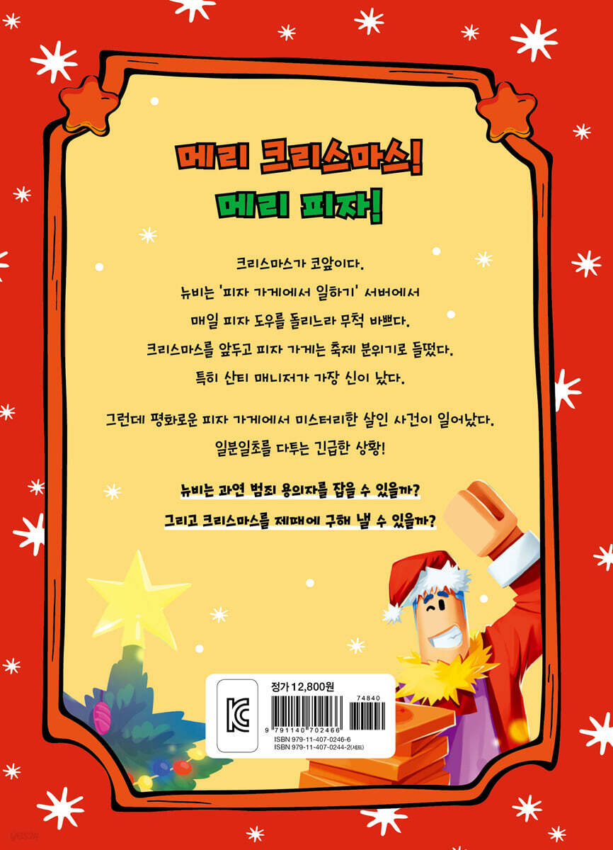 크리스마스가 코앞이다. 뉴비는 ‘피자 가게에서 일하기’ 서버에서 매일 피자 도우를 돌리느라 무척 바쁘다. 크리스마스를 앞두고 피자 가게는 축제 분위기로 들떴다. 특히 산티 매니저가 가장 신이 났다. 그런데 평화로운 피자 가게에서 미스터리한 살인 사건이 일어났다. 일분일초를 다투는 긴급한 상황! 뉴비는 과연 범죄 용의자를 잡을 수 있을까? 그리고 크리스마스를 제때에 구해 낼 수 있을까?