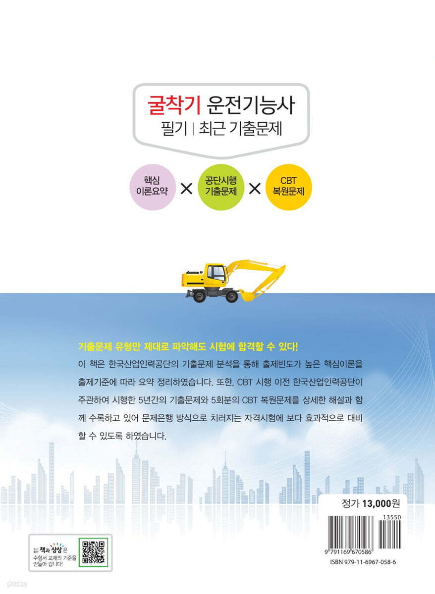 Chapter 01. 엔진구조 01 엔진본체 구조와 기능 02 윤활장치 구조와 기능 03 연료장치 구조와 기능 04 흡배기장치 구조와 기능 05 냉각장치 구조와 기능 Chapter 02. 전기장치 01 시동장치 구조와 기능 02 충전장치 구조와 기능 03 등화 및 계기장치 구조와 기능 Chapter 03. 유압일반 01 유압의 기초 02 유압 탱크와 유압 펌프 03 유압 모터와 유압 실린더 04 기타 부속장치 05 유압유 및 제어(컨트롤) 밸브 Chapter 04. 굴착기 구조 및 기능 01 일반사항 02 상부회전체와 하부주행체 Chapter 05. 굴착기 점검 01 운전 전·후 점검 02 장비 시운전 03 작업상황 파악 Chapter 06. 굴착기 주행 및 작업 01 주행 02 작업 03 전·후진 주행장치 Chapter 07. 건설기계 관련 법규 01 건설기계관리법 02 도로교통법 Chapter 08. 안전관리 01 안전보호구 착용 및 안전장치 확인 02 위험요소 확인 03 안전운반 작업 04 장비 안전관리 05 가스 및 전기 안전관리 PART 02. 최근 기출문제 2012년 4회 기출문제 2013년 1회 기출문제 2013년 2회 기출문제 2013년 3회 기출문제 2013년 4회 기출문제 2014년 1회 기출문제 2014년 2회 기출문제 2014년 3회 기출문제 2015년 1회 기출문제 2015년 2회 기출문제 2015년 3회 기출문제 2015년 4회 기출문제 2016년 1회 기출문제 2016년 2회 기출문제 2016년 3회 기출문제 PART 03. CBT 복원문제 CBT 복원문제 1회 CBT 복원문제 2회 CBT 복원문제 3회 CBT 복원문제 4회 CBT 복원문제 5회 |