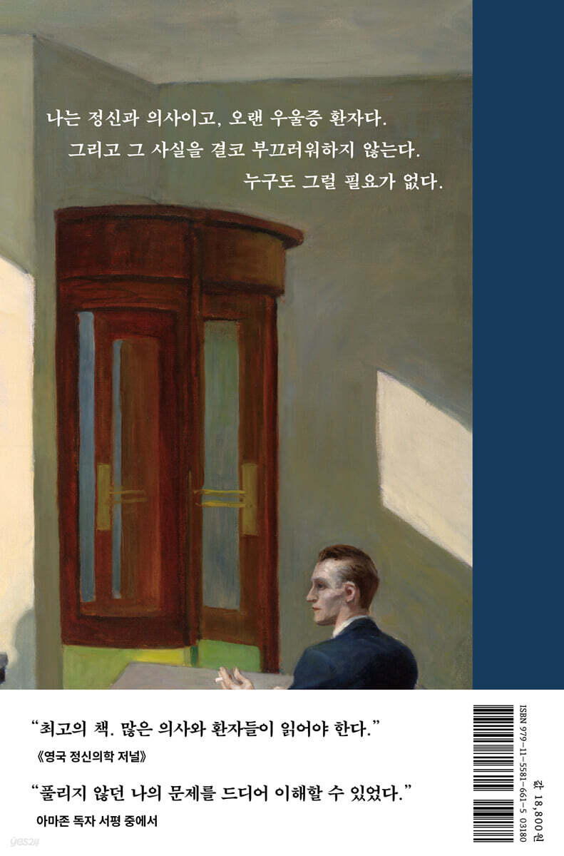 저자는 솔직하고 인상 깊은 서술로 본인이 거듭하여 우울증을 겪었던 이야기를 다양한 치료 경험과 함께 들려준다. 이런 종류의 여느 회고록과 차별되는 특징은 저자가 긴 세월 우울증과 투병하면서 동시에 정신과 의사로 일했다는 사실이다. 저자가 직접 치료하면서 본인의 이해를 풍부하게 넓힐 수 있었던 환자들의 모습이 생생한 필치로 묘사되어, 건조한 임상 사례가 아닌 실제 인간의 모습으로 눈앞에 되살아난다. - 톰 번스 (옥스퍼드 대학교 사회정신의학과 명예교수)