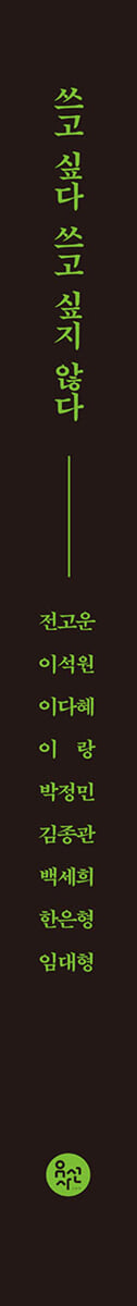 ---「전고운, 내일은 내일의 우아함이 천박함을 가려줄 테니」중에서 인생은 늘 이렇게 오락가락이다. 어떤 날엔 그 어떤 난리를 쳐도 단 한 글자도 쓰지 못하겠다가, 어느 날엔 책 한 권 분량을 뚝딱 써냈다가. 언젠가는 죽도록 쓰고 싶었다가 또 어떤 날엔 죽을 만큼 쓰기 싫었다가. ---「이석원, 어느 에세이스트의 최후」중에서 쓰지 않은 글을 쓴 글보다 사랑하기는 쉽다. 쓰지 않은 글은 아직 아무것도 망치지 않았기 때문이다. 하지만 쓰지 않은 글의 매력이란 숫자에 0을 곱하는 일과 같다. 아무리 큰 숫자를 가져다 대도 셈의 결과는 0 말고는 없다. 뭐든 써야 뭐든 된다. ---「이다혜, 쓰지 않은 글은 아직 아무것도 망치지 않았다」중에서 ‘너에게는 과분하다 생각하는 그 자리에 생각 없이 앉아 아무것도 안 하면서 으스대기만 하는 어떤 배 나온 아저씨를 떠올려라.’ 이 글을 읽고 나서는 ‘그래, 까짓것. 이 세상에 쓸모 있는 것만 존재하는 것도 이상하지’ 하고 좀 더 단순하고 용감하게 생각하게 되었다. ---「이랑, 오늘도 춤을 추며 입장합니다, 쓰기 지옥」중에서 누군가의 마음을 녹이기 위해 내가 쓸 수 있는 글은 반성문, 그리고 절절한 러브레터 둘뿐이었고, 이것만큼은 종종 쓰고 싶다는 생각을 한다. ---「박정민, 쓰고 싶지 않은 서른두 가지 이유」중에서 나는 가장 쓰고 싶지 않은 순간을 쓰고 싶은 순간으로 만들기 위해 노력하고, 허구 속으로 달려간다. 꾸며진 이야기를 좇고 있지만 그 이야기를 하기 위해서는 결국 소용돌이치는 하수구를 떠올려야 한다. ---「김종관, 꾸며진 이야기」중에서 사장님은 창작이 전무와 전부라고 했고 내게 창작은 무리하기와 마무리하기다. 잘 쓰지 못할까 봐, 인정받지 못할 거라는 두려움에 쓰기를 미루는 나를 채찍질하며 에너지를 무리하게 소진하고 거기서 오는 불안을 에너지 삼아 결국 마무리해 내는 것. ---「백세희, 무리하기, (마)무리하기」중에서 뭔가 결정적인 순간 같은 것은 오지 않았는데 쓸 수밖에 없었다. 내가 그것 말고는 할 줄 아는 게 없는 사람이라 그랬다. 결국 나는 소설을 쓰기 위해 인생 최초로 인생 개조를 하기 시작한다. ---「한은형, 쓰는 사람이 되기까지」중에서 한때 영화를 사랑했던 내 주변의 거의 모든 사람들이 이제 영화는 끝났다고 말한다. 그렇게 말하며 고소해한다. 정말 그렇게 되길 바라는 사람들 같다. 하지만 나는 아직 영화와 제대로 된 사랑을 시작하지도 못했다. ---「임대형, 비극의 영웅」중에서 |