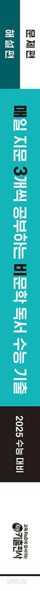 · 2025학년도 수능 대비 국어 영역 ‘제대로’ 공부법 · 국어 영역 FAQ(자주 묻는 질문) · 2025 매3비 공부 계획표 · [국어 잘하는 법] 국어 영역, 패턴을 알면 대안이 보인다! · 매3 오답 노트, 이렇게 만들어 사용하세요! (비문학편) · 지문별 내용 및 난이도 보기 · 복습을 위한 ‘어휘 노트’ · 자율 학습 체크리스트 · “주간&매일 공부 계획표” 작성법 및 예시 · 기출 문제 헷갈리는 명칭 확인하기 · 10개년 수능 기출 비문학(2024학년도~2015학년도) - 1주차(첫날~7일째): 독서 이론/인문/융합 - 2주차(8일째~14일째): 사회/융합 - 3주차(15일째~21일째): 과학/융합 - 4주차(22일째~28일째): 기술/예술/융합 - 5주차(29일째~35일째): 혼합 제재 - 6주차(36일째~42일째): 혼합 제재/실전 훈련 |