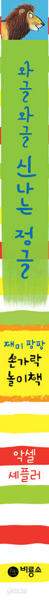 「재미 팡팡 손가락 놀이책」 시리즈는 각 권마다 강아지, 고양이, 개구리 등의 동물이나 농장, 정글과 같은 흥미를 끄는 소재를 바탕으로 하고 있어 아이들이 좋아할 만한 상황과 내용을 두루 갖춘 보드북이다. 생후 18개월 아이의 눈높이에 맞춘 쉬운 문장으로 문해력을 길러 주고, 전개 포인트에 적절히 들어가 있는 조작들은 아이들을 이야기에 참여 시키며 성취감을 느낄 수 있도록 돕는다. 이에 부모와 아이가 호응하며 함께 읽는다면 아이와 따뜻한 유대감을 형성하며 아이의 정서 발달과 부모의 안정적인 애착 형성에 큰 도움이 될 것이다. ■ 요리조리 밀고, 당기고, 돌리며 입체적인 책읽기로 소근육 발달과 두뇌 향상! 「재미 팡팡 손가락 놀이책」 시리즈는 손가락을 움직여 직접 참여하는 놀이형 그림책으로 아이의 호기심과 상상력을 키우고 신체 감각을 길러 준다. 그림 속 화살표 방향을 따라 밀고, 당기고, 돌리면 그림이 스르륵 바뀌기도, 숨어 있는 그림이 짠하고 나타나기도 하는데 아이들에게 숨은 그림을 찾는 즐거움을 주는 동시에 인지 발달을 돕는다. 또 다양한 손가락 놀이는 아이들의 소근육 발달과 두뇌 향상에 도움이 된다. 이처럼 「재미 팡팡 손가락 놀이책」 시리즈는 책을 처음 접하는 아이에게 책이 놀이라는 인식을 주며 즐거운 첫 책읽기 경험을 선사할 것이다. ■ 다양한 의성·의태어로 언어 감각이 쑥쑥! 「재미 팡팡 손가락 놀이책」 시리즈는 각 권마다 상황에 맞는 다양하고 생생한 의성어, 의태어가 가득해 아이들의 언어 감각과 어휘력을 풍부하게 향상시킨다. 특히 아이들에게 친숙한 동물들을 끌어들여 왈왈, 꼬끼오, 폴짝폴짝, 가르랑가르랑 등의 재미나고 생생한 의성어, 의태어를 들려준다. 또 말맛이 좋은 표현이 가득해 아이들이 쉽게 이해하고 따라 읽으며 책에 대한 흥미를 높일 수 있다. |