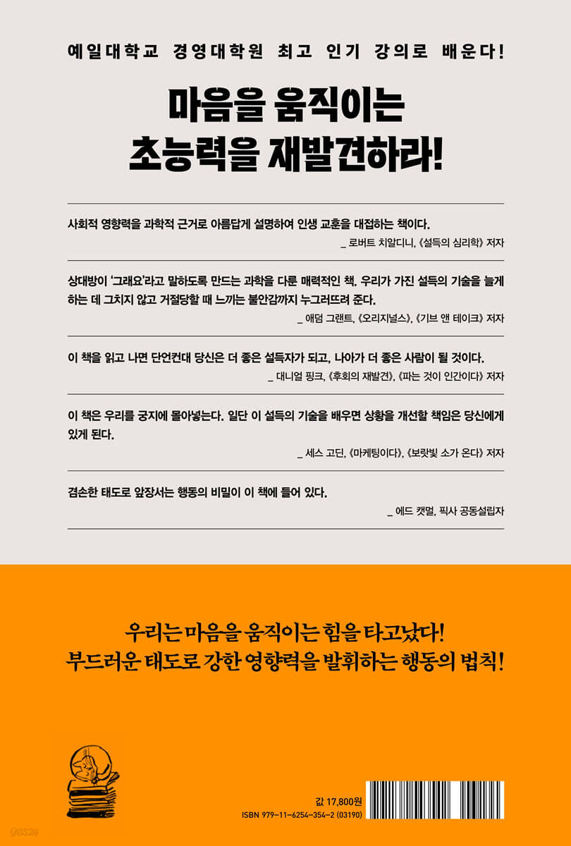 이 책을 읽고 나면 단언컨대 당신은 더 좋은 설득자가 되고, 나아가 더 좋은 사람이 될 것이다. - 다니엘 핑크 (《후회의 재발견》, 《파는 것이 인간이다》 저자)