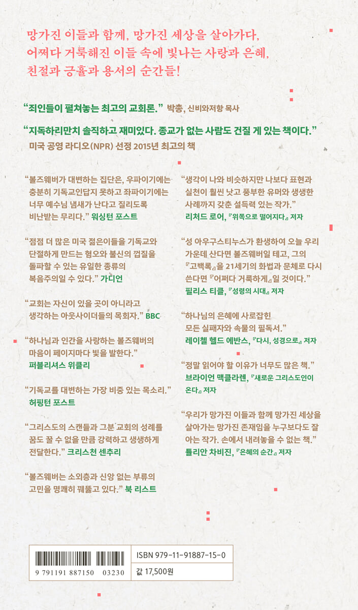 “하나님의 은혜에 사로잡힌 모든 실패자와 속물의 필독서.” - 레이첼 헬드 에반스 (『다시, 성경으로』 저자)
