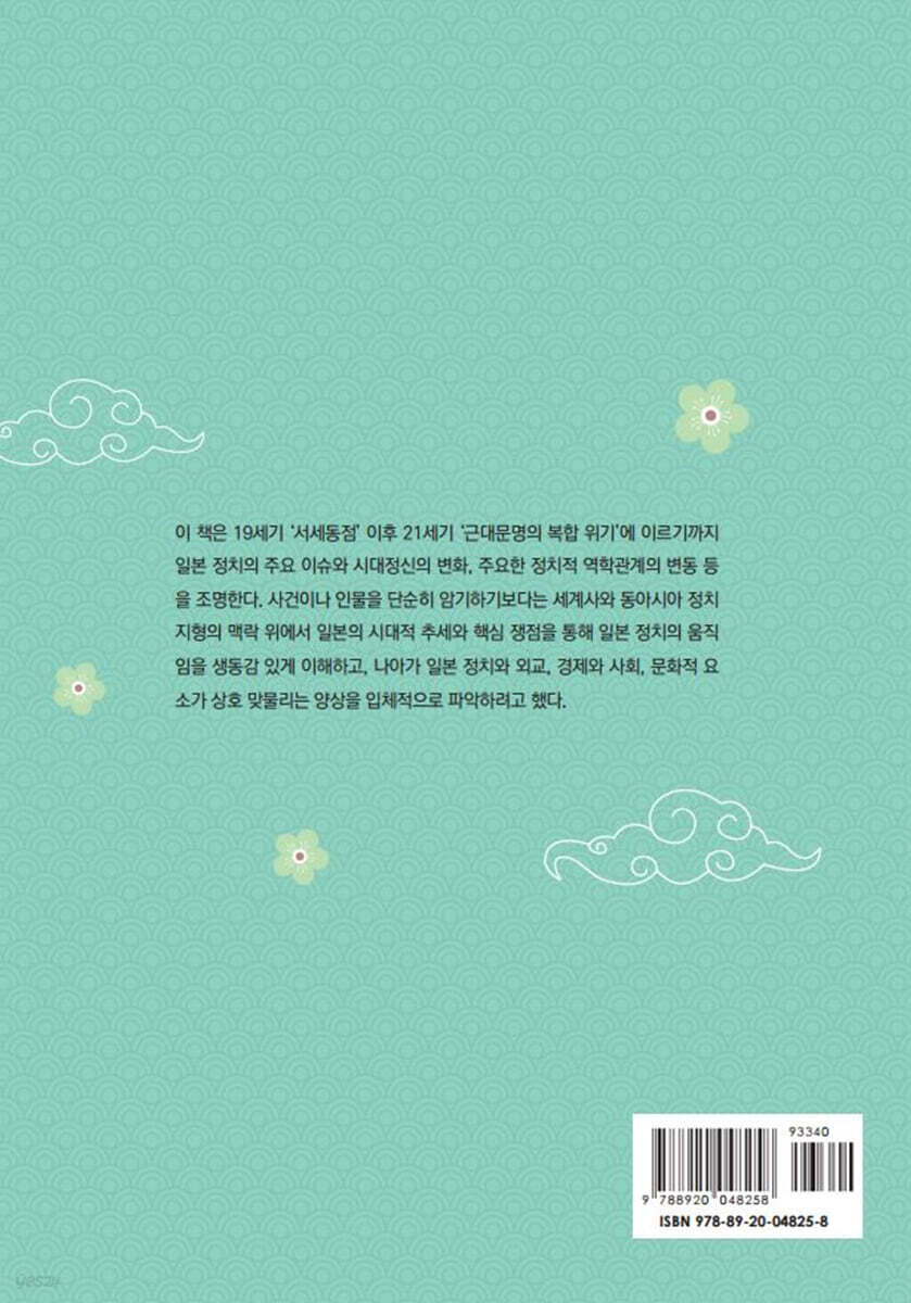 제1부 근현대 일본정치사를 보는 눈 제1장 근현대 일본정치사를 어떻게 공부할 것인가 제2부 근대 국제질서와 일본정치사 제2장 동아시아의 전통질서와 일본 정치 제3장 서세동점과 메이지유신으로 가는 길 제4장 메이지정부의 근대국가 만들기 제5장 전쟁과 제국 일본 제6장 다이쇼 데모크라시 제7장 쇼와유신과 국가개조운동 제8장 제국 일본과 신민의 길 제3부 전후 냉전질서와 일본정치사 제9장 미국의 점령 통치와 전후개혁 제10장 상징천황제와 평화헌법 체제 제11장 55년체제의 성립과 고도성장기의 일본 정치 제12장 55년체제의 위기와 변용 제4부 현대 세계질서와 일본정치사 제13장 탈냉전질서와 일본 정치 제14장 근현대 일본 정치문화의 특징 제15장 21세기 일본 정치의 서막 |