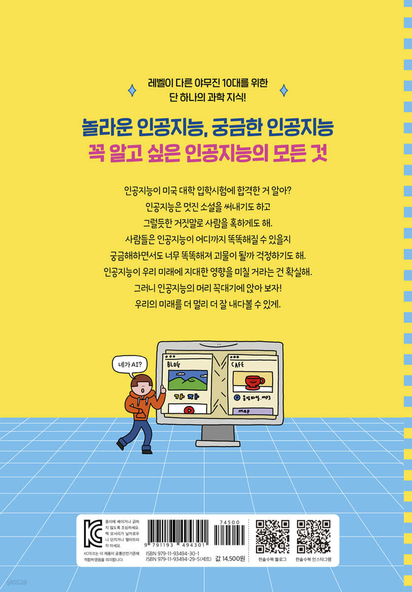 다각도로 살펴본 분석·기사·도표로 정확한 이해를, 미래 예측으로 확실한 대비를, 그래픽 오거나이저로 내 생각을 정리한다! 《넥스트 레벨 01 인공지능》은 ‘다큐툰’으로 시작된다. 어린이들은 자신을 닮은 주인공과 첨단 과학의 세계로 안내하는 미지의 존재가 펼치는 만화를 통해 인공지능에 대한 호기심과 궁금증을 갖게 된다. 이어지는 ‘Check it up’에서는 사회 각 분야(시사, 기업, 상식, 기술, 산업, 환경……)의 기사, 도표, 분석 등을 통해 인공지능의 과거와 현재에 대해 정확하게 이해할 수 있다. 다음으로는 ‘유비무환’을 통해 인공지능 기술도 양면성과 문제점을 점검하고, 슬기롭게 대처하고 해결할 수 있는 방법을 찾아본다. 마지막으로 그래픽 오거나이저를 직접 구성해 보면서 내 생각을 정리하고 인공지능 시대를 살아갈 나의 모습을 그려 보게 된다. |