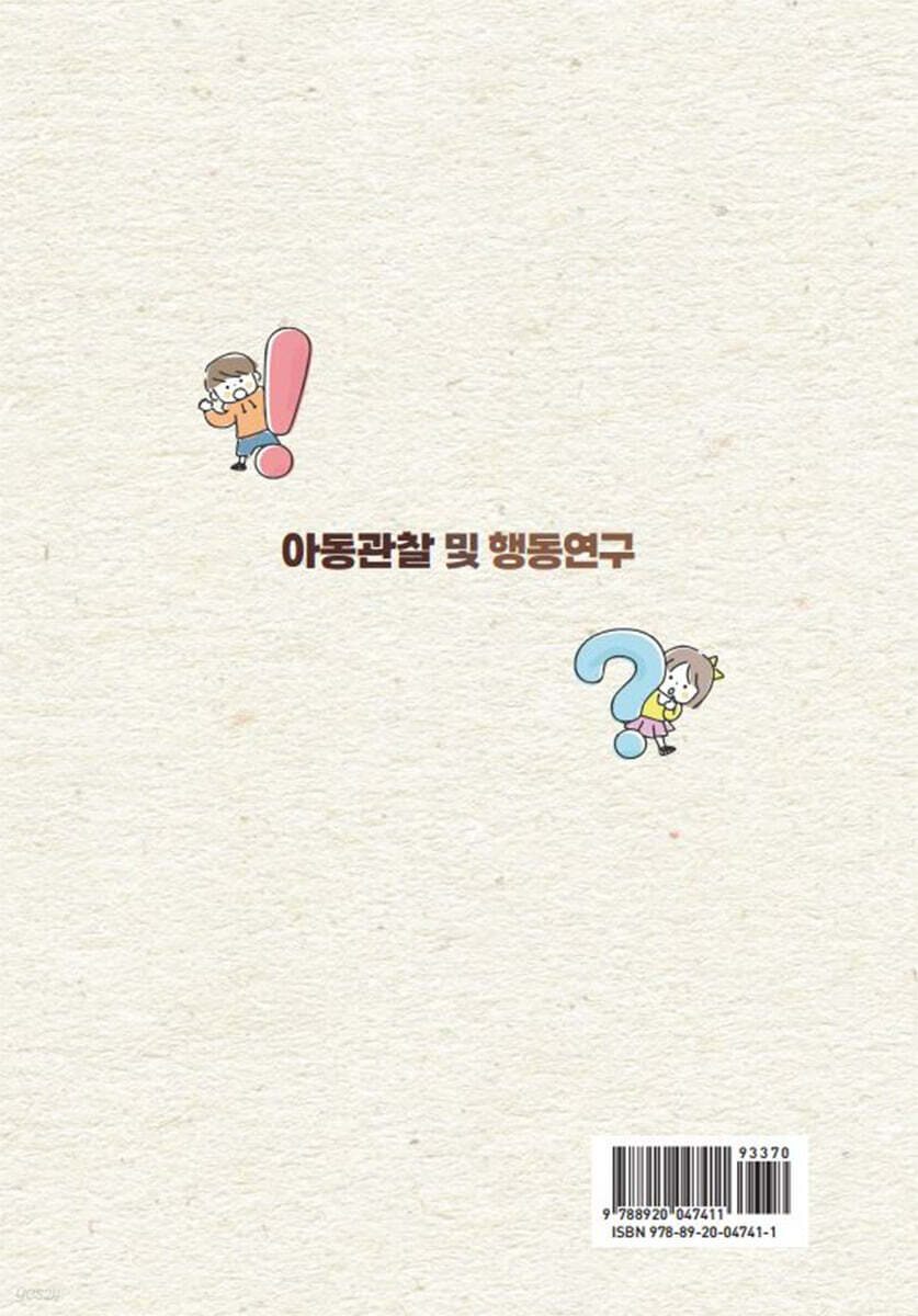 1.1 아동관찰의 의의 및 목적 1.2 아동관찰의 유형 1.3 아동관찰의 절차 1.4 아동관찰과정에서의 유의점 제 2 장 아동관찰과 행동연구의 이해 2.1 아동관찰 및 행동연구 2.2 아동행동관찰 연구의 윤리적 문제 제 3 장 아동행동연구의 이해 3.1 사례연구 3.2 조사연구 3.3 실험연구 제 4 장 관찰방법 Ⅰ: 표본식 기록법, 일화기록법 4.1 표본식 기록법 4.2 일화기록법 4.3 표본식 기록법과 일화기록법 비교 제 5 장 관찰방법 Ⅱ: 사건표집법, 시간표집법 5.1 서술식 사건표집법 5.2 빈도 사건표집법 5.3 시간표집법 5.4 빈도 사건표집법과 시간표집법 비교 1 제 6 장 관찰방법 Ⅲ: 행동목록법, 평정척도법 6.1 행동목록법 6.2 평정척도법 6.3 행동목록법과 평정척도법 비교 제 7 장 아동발달과 검사 7.1 영유아 발달의 이해 7.2 아동검사의 이해 7.3 아동검사의 종류 제 8 장 누리과정 및 표준보육과정에 의한 영유아 관찰평가 8.1 누리과정에 기초한 유아 관찰평가 8.2 표준보육과정에 기초한 영아 관찰평가 제 9 장 포트폴리오 평가 9.1 포트폴리오 평가의 이해 9.2 포트폴리오 평가의 절차 제 10 장 물리적 환경 관찰 10.1 영아를 위한 물리적 환경 관찰 10.2 유아를 위한 물리적 환경 관찰 제 11 장 일과 운영과 영유아 관찰 11.1 영아반 일과 운영과 관찰 11.2 유아반 일과 운영과 관찰 제 12 장 놀이 관찰과 지원 12.1 놀이의 이해 12.2 놀이 관찰과 지원의 실제 제 13 장 영유아 관찰과 문제행동 지도 13.1 영유아 문제행동 지도의 이해 13.2 영유아 문제행동 지도의 실제 제 14 장 교사 평가를 위한 반성적 관찰 14.1 교사 평가를 위한 반성적 사고 14.2 교사 평가를 위한 반성적 관찰 제 15 장 관찰을 활용한 가정과의 소통 15.1 부모면담의 이해 15.2 가정면담 계획 15.3 부모면담 실행 ■ 참고문헌 |