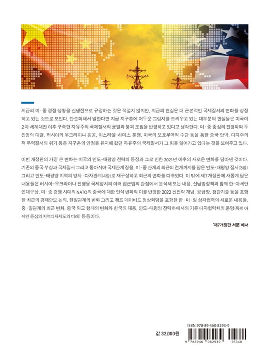 --- p.56 「01 국제관계를 어떻게 이해할 것인가?」 중에서 미국과 중국의 패권 경쟁은 어떠한 결과를 낳게 될 것인가? 우리는 여기서 그레이엄 앨리슨(Graham T. Allison)의 ‘투키디데스의 함정’ 논의를 다시 한 번 생각해 보아야 한다. ‘투키디데스의 함정’이란 부상하는 도전 세력에 대한 지배 국가의 두려움 그리고 도전 국가의 잘못된 판단으로 인해 두 국가가 서로가 원하지 않는 전쟁을 하게 되는 현상을 말한다. …… 앨리슨은 현재 미국과 중국이 겪고 있는 17번째의 투키디데스의 함정은 그 구조적 원인과 시진핑과 트럼프라는 지도자 요인으로 인해 전면전으로 귀결될 가능성이 커지고 있다고 주장한다. 무역 분쟁, 사이버 공격, 해상에서의 충돌 등이 전면전으로 확대될 가능성이 크다는 것이다. 이러한 주장의 실현 가능성은 미지수이지만 미국 국내정치의 변화 가능성, 미·중의 공멸에 대한 분명한 인식, 그리고 아직도 중국의 오판의 가능성이 낮다는 측면에서 본격적인 무력 충돌의 가능성은 낮다는 생각이 든다. --- p.86 「02 국제정치의 역사」 중에서 미국의 인도-태평양 전략이 구체적인 모습을 갖추어가면서 이에 대한 한국의 기본 입장은 신중한 지지였던 것으로 보인다. 문재인 정부에서는 인도-태평양 전략의 근간에 깔려 있는 중국 견제에 적극적으로 참여하는 것은 부담스럽지만 동맹국인 미국의 새로운 지역 전략에 등을 돌릴 수는 없는 동맹국으로서의 어려운 입장이 반영된 미국의 인도-태평양 전략과 한국의 신남방정책을 연계하는 해법을 내놓았다. …… 이 공동성명이 중요한 이유는 …… 사실상 중국을 염두에 둔 미국의 인도-태평양 전략의 핵심 내용을 한국이 공유한다는 점을 명문화한 점이다. …… 다시 말해 한국은 미국의 인도-태평양 전략에서 중국 견제에 대한 적극적 참여를 피하면서도 사실상 미국의 인도-태평양 전략에 적극적으로 참여하는 외교적 해법을 보여주었다. --- p.119~120 「 03 중국의 부상과 인도-태평양 질서의 등장」 중에서 중·일관계가 미·중관계의 악화로 인해 갈등 요인이 확대된 것은 사실이다. 일본이 미국의 인도-태평양 전략에 동조하면서 미국의 대중 압박 전략에 적극적으로 참여하면서 중·일관계는 긴장이 심화될 수밖에 없다. 특히 미국이 인도-태평양 전략에서 대만 문제를 직접적으로 거론하면서 대만 해협 유사시 자위대의 역할을 확대해 온 일본과의 관계가 악화될 가능성이 크다. 그럼에도 불구하고 중·일관계가 갈등 일변도라고 생각하는 것은 잘못된 인식이다. 중·일 양국은 서로의 경제적·안보적 중요성을 잘 인식하고 있고 안정적인 관계를 유지하는 것이 국익에 유리하다는 것을 잘 알고 있다. 일본과 중국의 경제관계는 높은 상호의존성을 보이고 있어 안정적인 관계가 매우 중요하다. 사실 시진핑 이후 중·일관계는 커다란 갈등 요인 없이 잘 관리되어 왔다. --- p.139 「04 인도-태평양 국제정치: 주요 양자·다자 관계」 중에서 2016년은 신자유주의적 글로벌화에 대한 불만이 전 세계를 휩쓴 것으로 보인다. 자유무역은 곳곳에서 반대에 부딪치고 있다. 2016년 미국 대선의 양당 후보자들 모두 자유무역정책을 손보겠다고 공약했다. 프랑스에서는 EU와 미국과의 자유무역협정에 대한 반대 목소리가 높다. …… 2016년 미국 대선을 움직인 커다란 주제 중 하나가 무역자유화 같은 경제개방, 금융자본주의이다. 값싼 중국산 제품에 의해 경쟁력을 잃은 미국산 제품, 그로 인한 일자리 감소, 월가로 대표되는 초국적 자본들의 투기적 행태, 이러한 것들이 백인 중산층으로 하여금 도널드 트럼프를 지지하게 만들었다. 영국의 EU 탈퇴 원인 중 높은 비중을 차지한 것이 이민자들에 대한 반감인데 영국인들은 이민자 문제를 글로벌화의 한 결과로 보고 영국의 EU 탈퇴를 지지한 것이다. --- p.156 「05 글로벌화」 중에서 2022 마드리드 NATO 정상회의에서 채택된 NATO의 2022 ‘전략적 개념(Strategic Concept)’은 처음으로 중국을 전략적 우선순위에 언급했다. 중국의 군사적 야망, 대만에 대한 대결적 언사 그리고 러시아와의 계속적인 관계 강화가 체계적인 도전이라는 것을 분명히 한 것이다. NATO는 중국이 NATO의 적이 아니라는 것을 분명히 했지만 동시에 중국으로부터의 도전에 대해 명확히 인식해야 한다는 것도 분명히 했다. …… 이것은 향후 NATO 활동 범위가 NATO의 핵심 국가이고 인도-태평양 전략을 적극적으로 추진하고 있는 미국을 연결고리로 해서 인도-태평양까지 확대될 수 있는 전략적 토대가 마련되었다는 것을 의미한다. --- p.216 「06 지역주의와 지역통합」 중에서 일부 전문가는 한국이 핵개발을 할 수 있는 기술적 기반이 되어 있지 않다고 지적하기도 한다. 한국의 핵개발은 결국 농축우라늄 프로그램만이 가능한 옵션인데 농축우라늄 기술을 한국이 단시간 내에 개발하는 것도 불가능한 일이라는 것이다. 어쨌든 전술핵 재도입이나 자체 핵개발이 현실적으로 어렵기 때문에 다른 의견이 나오고 있다. 이것은 나토식 핵 공유 모델로 핵이 없는 나토 국가들이 자체의 핵을 보유하지 않고 미국의 전술핵을 공동으로 운용하는 모델을 한국에 적용하자는 것