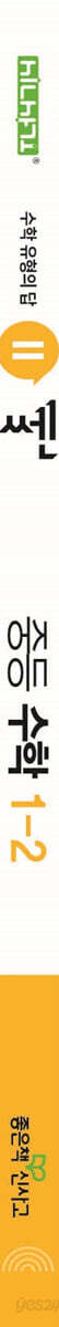 전국 중학교의 학교 시험 기출 문제를 수집하고 분석하여 유형별로 총정리했기 때문에 쎈 수학 한 권만으로도 중학교 수학 학습을 완벽하게 완성할 수 있습니다. 2. 모든 문제를 A, B, C 3단계 난이도로 구성 쉬운 문제에서부터 어려운 문제까지 순서대로 도전하는 것이 합리적인 수학 학습법입니다. 쎈 수학은 모든 문제를 3단계로 나누어 수준별로 구성하고, 유형 뽀개기에서는 이를 다시 하, 중, 상의 난이도로 세분하여 체계적으로 수학 실력을 키울 수 있도록 만들었습니다. 3. 개념별로 입체적이고 세밀한 유형 제시 하나의 개념에서 파생되는 문제는 그 유형이 다양하게 나타납니다. 중등 수학 1-2에서 다뤄야 하는 모든 문제를 164개 유형으로 분류하고 1266문제로 정리하여 유형별로 충분한 연습이 가능하게 하였고 이를 통해 문제 해결력을 기를 수 있습니다. |