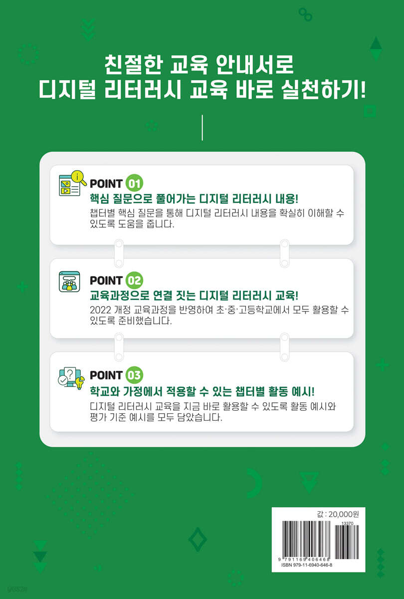 디지털 매체를 기반으로 한 소통이 본격화한 지 어느덧 한 세대가 지났습니다. 그러는 동안 타자 교육, 소프트웨어 활용 교육, 통신언어 예절 교육, 정보 검색 대회, 홈페이지 제작 대회, 과의존 치유 캠프, 팩트 체크 대회 등 매체 환경과 소통 문화의 변화에 따 라 다양한 디지털 리터러시 프로그램이 생겨났습니다. 이제는 디지털 매체가 인간과 인간의 소통을 넘어 인공지능과의 소통을 매개하면서 디지털 리터러시 교육은 또 한 번 새로운 단계로 넘어가는 양상입니다.