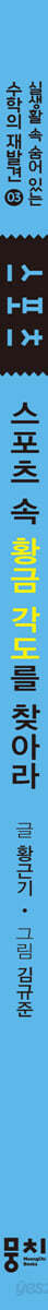 이 시리즈에서는 여러분 또래가 주인공인 흥미진진한 이야기가 펼쳐집니다. 주인공을 따라 여러 에피소드를 겪는 과정에서 자칫 지루하거나 어렵게 느껴졌던 수학이 술술 읽히는 것을 발견하게 될 것입니다. 표지판을 통하여 수의 범위를 알아보고 부산 광안대교로부터 평행을 공부하는 ‘교통’, 롯데월드타워와 큐브 하우스 등 독특한 건축물에서 수학을 이끌어 내는 ‘건축’, 토너먼트와 리그전의 원리를 수학으로 풀어내는 ‘스포츠’, 어른 옷과 아이 옷의 치수가 다른 이유를 수학적으로 알아보는 ‘음식과 패션’, 날짜 변경선으로 시간의 덧셈과 뺄셈을 공부하는 ‘자연’ 등 수학과 융합된 생활 속 이야기들이 정말 신선하고 다채롭지 않나요? 실생활 속 수학이 다양한 방법으로 융합될 수 있다는 것을 깨닫는 과정을 통해 수학적 문제 해결력이 늘어나게 되겠죠. 여러분도 이 시리즈를 통해 생활 곳곳에 숨어 있는 수학적 문제를 발견하는 습관을 갖고, 이를 해결하는 과정 속에서 2022 개정 교과과정에서 필요한 수학적 역량을 키울 수 있을 것입니다. 실생활과 밀접한 소재로 융합된 수학! 우리의 주변에서 수학과 융합할 수 있는 소재는 너무도 많습니다. 그중에서 초등학생과 친밀한 것들을 골라 생활 속의 수학으로 발전시켰다는 것이 ‘실생활 속 숨어 있는 수학의 재발견’ 시리즈의 가장 큰 특징이라 할 수 있습니다. 「스포츠 속 황금 각도를 찾아라」는 창던지기, 농구, 컬링, 스키점프 등 여러 스포츠와 수학을 융합하였습니다. 단순해 보였던 스포츠도 수학이 바탕을 이루고 있다는 것을 설명해 주고 있는데, 예를 들어 창던지기와 농구에는 황금 각도가 있고, 컬링과 스키점프에는 특별한 점수 계산법이 있으며, 야구의 타율에는 확률의 비밀이 숨어 있다는 사실을 알게 됩니다. 또한 토너먼트와 리그전에서 경기 수를 구할 때 이용되는 수학 계산법에 대해서도 알아봅니다. 다양한 읽을거리가 가득, 책 속 부록! ‘실생활 속 숨어 있는 수학의 재발견’ 시리즈는 수학적 읽을거리가 풍성하다. 해당 주제에 대해 보충하는 ‘한 걸음 더’ 코너도 있고 각 장이 끝날 때마다 내용 속에 나온 수학 개념을 잘 이해했는지 확인하는 간단한 퀴즈도 있으며, 끝부분에는 실생활 연계 통합 교과형(steam) 읽을거리 ‘수학 읽기’가 실려 있습니다. 「스포츠 속 황금 각도를 찾아라」에서는 창던지기, 농구, 컬링, 야구 등 스포츠 속에 숨어 있는 여러 수학 개념을 익힐 수 있습니다. |