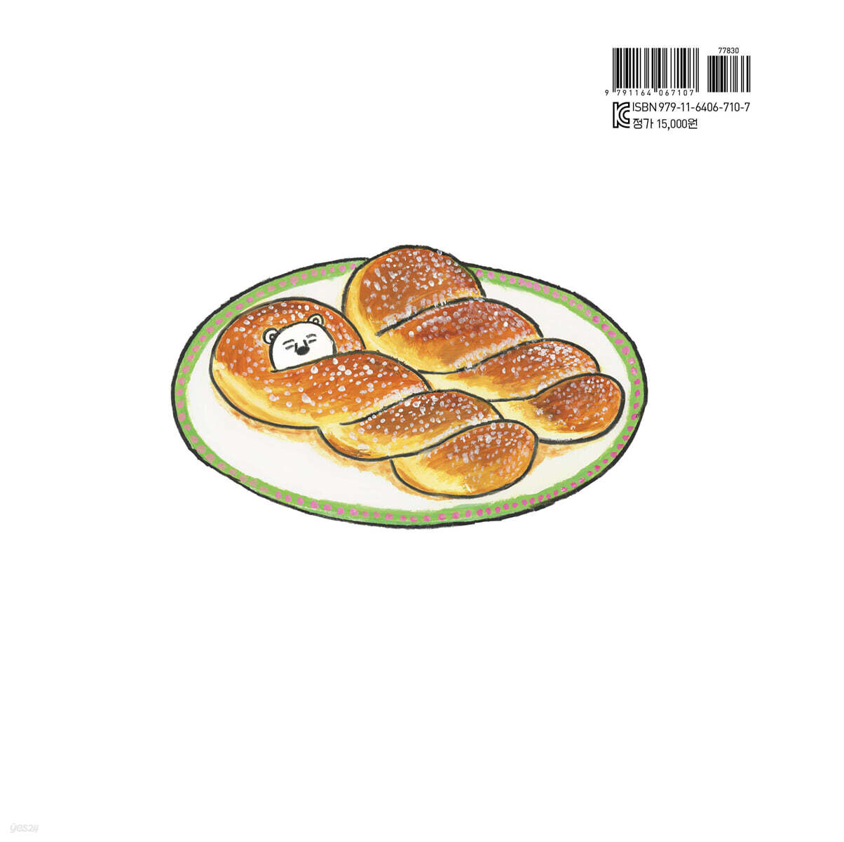 먹보 백곰의 엉뚱하고 즐거운 상상 빵을 너무 좋아하는 백곰은 어느 날 생각했습니다. ‘좋아하는 빵 속에 들어가면 어떤 기분일까?’ 하고요. 상상만 해도 군침이 돕니다. 백곰은 어느 빵에 먼저 들어갈까요? 담백한 식빵은 좋아하는 음식을 올려 먹기에 안성맞춤입니다. 치즈 위에 바나나를 올려서 구우면 ‘바나나 치즈 토스트’가 되고, 토마토소스 위에 치즈와 갖가지 야채를 올려서 구우면 ‘피자 토스트’가 되지요. 백곰은 가장 좋아하는 ‘달걀 마요네즈 토스트’에 들어가 보기로 합니다. 부드럽고 달큼한 냄새가 온몸에서 풍기니 백곰 얼굴에 미소가 저절로 흐릅니다. 식빵에 이어 백곰은 또 어떤 빵과 한 몸이 될까요? 음식과 백곰의 완벽한 합체! 백곰이 빵으로 변하는 열세 가지 기발한 방법 백곰은 빵이 되기 위해 오만가지 방법을 동원합니다. 카레 빵을 가른 뒤 빵과 카레 사이에 난 틈 사이로 들어가기, 옥수수 빵 위에 누워 옥수수 덮고 있기, 판다 빵들 옆에 선글라스 끼고 숨어 있기 등 각 빵에 어울리는 방식을 기가 막히게 찾아내지요. 마치 ‘이렇게 숨으면 안 보이겠지?’ 하고 숨바꼭질 놀이를 하는 듯합니다. 백곰이 어떤 모습으로 숨어 있을지 찾는 것도 이 책의 재미 포인트입니다. 멜론 빵의 바삭하고 달콤한 윗면부터 파먹고 들어가는 모습이나 따끈따끈한 수프 빵 속에서 능청스럽게 목욕하는 모습은 보고만 있어도 웃음이 터져 나옵니다. 때로 백곰은 독자에게 말을 건네기도 합니다. 다양한 빵을 소개하면서 “너는 어떤 빵 속에 들어가 볼래?” 하고 묻는 식으로 말이죠. 백곰이 들어가지 않은 빵들도 찬찬히 살펴보며 ‘나는 어떤 빵을 좋아하더라?’ 하고 고민하다가 어느새 빵 속에 들어가 있는 자기 모습을 상상하게 될지도 모릅니다. 함께 먹으면 더 맛있어! 나눠 먹는 기쁨을 전하는 그림책 한집에서 함께 살며 음식을 같이 먹는다는 의미에서 가족을 또 다른 말로 ‘식구(食口)’라고 부르지요. 먹는 걸 너무너무 좋아하는 백곰은 맛있는 음식 속에 들어갈 때 가족을 불러오기도 합니다. 맛있는 음식은 사랑하는 가족과 함께 나눌 때 더 행복한 법이니까요. 처음에는 백곰만 등장했다가 소시지 빵에서 동생이 쑥 튀어나오더니, 엄마 아빠에 이어 할아버지와 할머니까지 총출동합니다. 좁은 베이글 구멍 속에 여섯 식구가 모두 들어가 빠져나오지 못해도 백곰 가족은 웃음이 떠나지 않습니다. 특히 엄마표 빵을 발견한 백곰이 가족과 나눠 먹겠다고 다짐하는 마지막 장면은 독자들의 마음까지 포근해지게 합니다. 『빵이 된 백곰』은 빵과 가족을 향한 백곰의 애정이 듬뿍 담긴 그림책입니다. 자, 이제 빵 냄새 폴폴 나는 그림책을 맛볼 차례입니다. 독자 여러분도 상상해 보세요. 좋아하는 빵 속에 들어가면 어떤 기분일까요? |