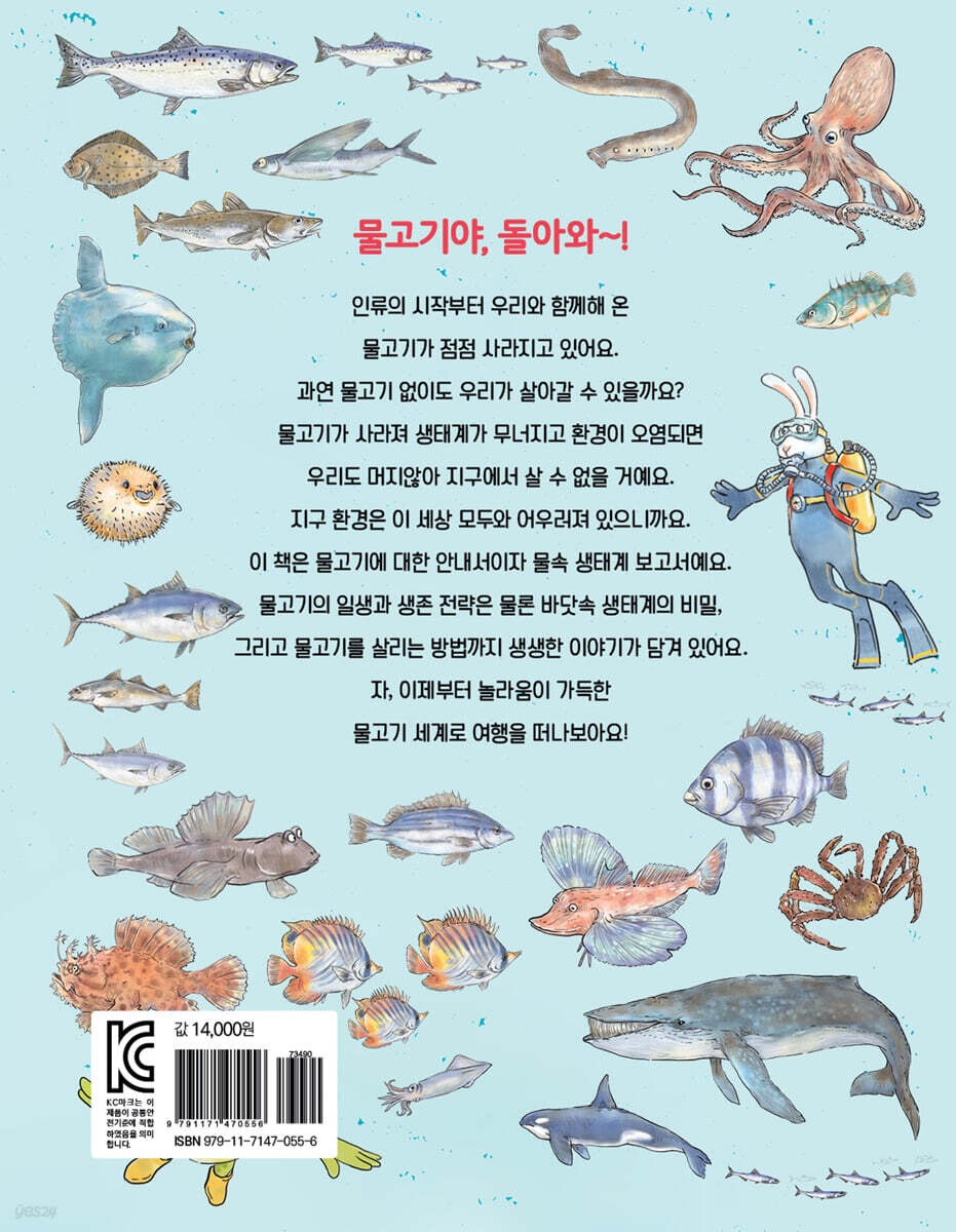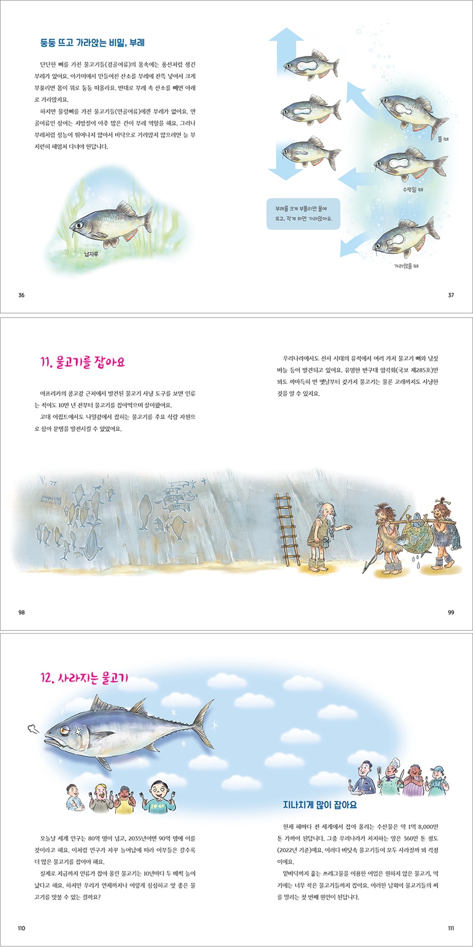 2. 내가 바로 물고기야 3. 물고기의 몸속 4. 물고기의 한살이 5. 변신하는 물고기 6. 세상을 누비는 물고기 7. 물고기들의 생존 전략 8. 물고기들의 아주 특별한 무기 9. 나도 물고기야 10. 식탁 위의 물고기 11. 물고기를 잡아요 12. 사라지는 물고기 13. 물고기야, 돌아와! 물고기 관련 상식 퀴즈 물고기 관련 단어 풀이 |