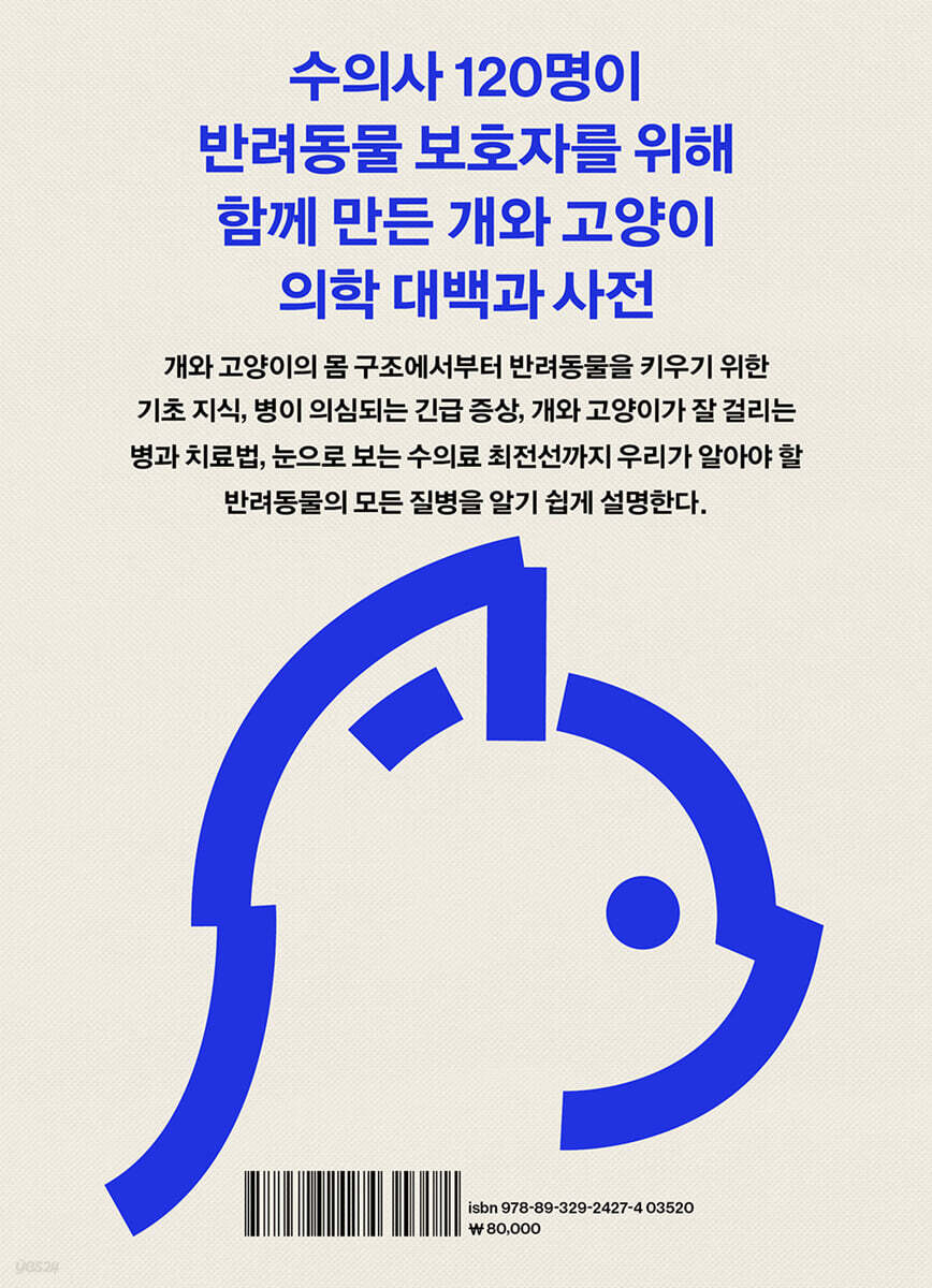 강아지와 고양이를 키우기 위해 알아야만 하는 기초 지식부터 증상별로 질병을 총망라한 의학 정보까지, 이 책 한 권만 있다면 우리와 함께 사는 반려동물의 질병 대부분을 이해할 수 있습니다. - 윤홍준 (수의사, [윤샘의 마이펫연구소])