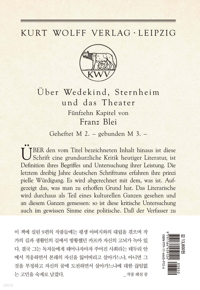 판결 시골 의사 갑작스러운 산책 옷 원형극장의 관람석에서 오래된 기록 법 앞에서 학술원에 드리는 보고 작품 해설 작가 연보 |