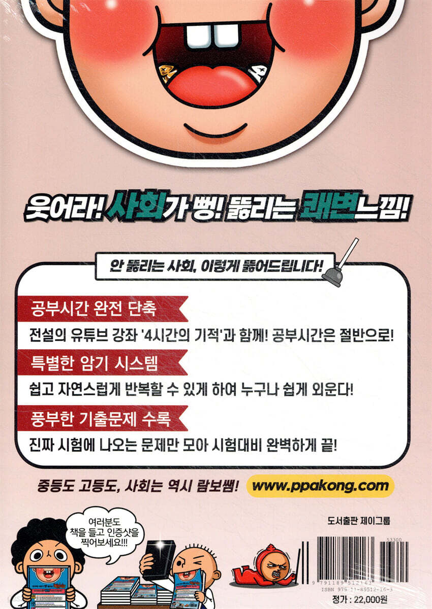 -교과서 전 내용에 대한 친절한 설명으로 더욱 빠른 이해와 재미 보장! -센스 넘치는 본문 구성과 시험에 나오는 문제만 콕 찝은 반복유형문제 수록! -특별부록 '암기가 잘되는 복습교재 *차근차근 헬스장* 구매자 전원증정! 본문 개념정리+키워드맵+차근차근 헬스장+친절한 해설지를 더해 만든 응가사회는 아무리 공부에 흥미가 없는 학생이라도 재미있게 볼 수 있는 참고서임을 확신합니다. |