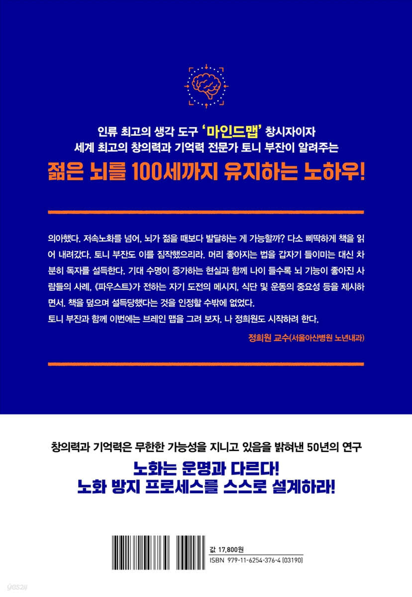 의아했다. 저속노화를 넘어, 뇌가 젊을 때보다 발달하는 게 가능할까? 다소 삐딱하게 책을 읽어 내려갔다. 토니 부잔도 이를 짐작했으리라. 머리 좋아지는 법을 갑자기 들이미는 대신 차분히 독자를 설득한다. 기대 수명이 증가하는 현실과 함께 나이 들수록 뇌 기능이 좋아진 사람들의 사례, 《파우스트》가 전하는 자기 도전의 메시지, 식단 및 운동의 중요성 등을 제시하면서. 책을 덮으며 설득당했다는 것을 인정할 수밖에 없었다.