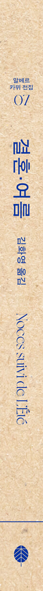 21세기 현대의 독자에게 생생하게 전하는 부조리와 반항의 정신을 만나다! 20세기, 양차 대전을 거치면서 세계는 물질적으로 황폐해졌고, 과학과 이성이 인류를 이롭게 한다는 신뢰가 무너지면서 삶에 회의를 느끼는 사람이 많았다. 카뮈는 이에 삶의 유한함을 인정하되('부조리') 그 테두리 안에서 최대한 격렬하게 삶을 긍정하는 '반항'을 권했다. 21세기 현재, 물질적으로는 풍족해지고 과학과 이성은 더욱 발전했지만, 물질만능주의와 사회적 갈등이 심화되면서 여전히 삶에 회의를 느끼는 사람이 많다. 그렇기 때문에 20세기 카뮈의 '반항적 낙관론'은 21세기 현대 독자에게 여전히 유효하다. 티파자에서 지중해와 태양을 거쳐 다시 티파자로 돌아오기까지, 알베르 카뮈의 오감이 생생하게 살아 숨 쉬는 《결혼·여름》 《결혼·여름(Noces suivi de L'Ete)》는 1939년에 출간된 《결혼(Noces)》과 1954년에 출간한 《여름(L'Ete)》을 담은 알베르 카뮈의 여행에세이다. 《결혼》의 〈티파자에서의 결혼〉에서 출발해 《여름》의 〈티파자로 돌아오다〉로 사실상 마무리되는 여정은 카뮈의 감각적인 문장과 특유의 삶에 대한 명철한 통찰로 가득 차 있다. 역자 김화영은 이 작품을 “지드의 《지상의 양식》, 장 그르니에의 《섬》과 더불어 단연 20세기 프랑스의 시적 산문집의 3대 걸작 중 하나”로 꼽았다. 두 작품에는 알제리의 티파자와 오랑, 이탈리아, 브라질 등을 여행하며 휴식을 취하던 카뮈의 모습이 그려진다. 이 또한 카뮈의 작품세계를 관통하는 ‘부조리’와 무관하지 않다. 푸른 바다와 뜨거운 태양, 도시에서 바라본 여러 인간군상은 카뮈의 다른 작품에 녹아 있다. 카뮈의 세계를 여행하는 독자라면 카뮈의 ‘오감’여행에서 유려한 문장의 달콤한 ‘부조리’의 쌉사름한 맛을 모두 느낄 수 있을 것이다. 정본, 완본, 근본! 카뮈의 모든 것을 담은 책세상 알베르 카뮈 전집 카뮈의 정수를 가장 온전히 만나는 방법은 프랑스어로 그의 작품을 읽는 것일 테지만, 한국 독자들에게는 현실적으로 어려운 일이다. 책세상판 알베르 카뮈 전집은 국내 최고 카뮈 전문가 김화영 교수가 전권의 번역을 맡고, 작품의 정본으로 인정받는 프랑스 갈리마르 출판사의 플레야드판 전집(Œuvres completes)을 대본으로 삼아 카뮈의 작품 세계를 한국 독자들에게 온전히 전달하는 데 주안점을 두었다. 전 세계 여러 언어로 번역된 카뮈 전집 가운데 한 명의 번역자가 전권의 번역을 맡은 판본은 김화영 명예교수의 책세상판이 유일하다. 책세상은 1987년 프랑스 갈리마르 출판사와 알베르 카뮈 전집의 독점 출간 계약을 맺고, 국내 최고 카뮈 전문가 김화영 교수의 번역으로 《결혼·여름》(1987년)부터 《시사평론》(2009년)까지 23년에 걸쳐 총 20권의 알베르 카뮈 전집을 출간했다. 2011년부터 카뮈의 사후 저작권이 풀리면서 국내 여러 출판사에서 다양한 번역으로 알베르 카뮈의 대표 작품들이 출간되었지만, '전집'을 출간한 출판사는 2024년 지금까지도 책세상뿐이다. |