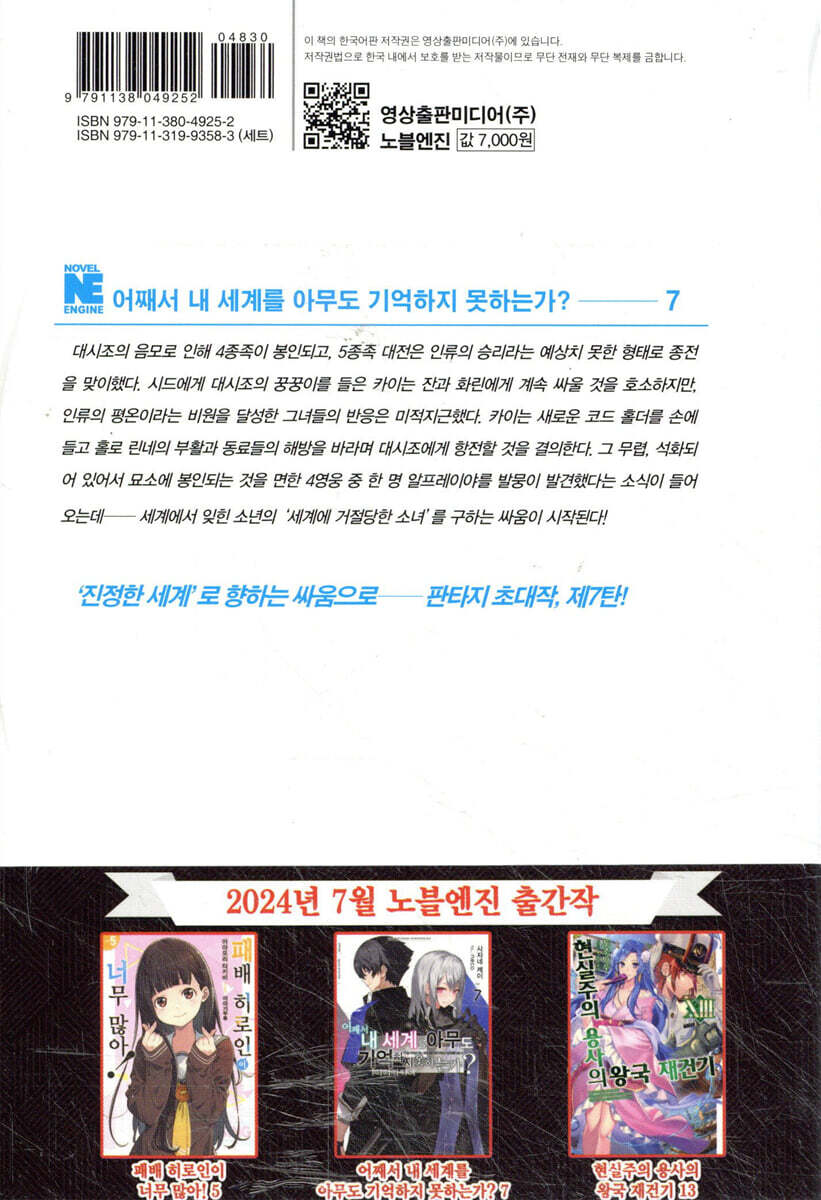 World.1 대전이 끝난 땅에서 Intermission 어째서 나를 기억하지 못하는가? World.2 정천(淨天)의 날개 World.3 사자 Intermission 마치 그날의── World.4 이 세상에서 가장 거룩하도다 World.0 땅에 떨어진 깃털은 날아오르고 World.5 신화 속 섬의 신화 World.6 세계종족의 이름으로 Epilogue 미움받은 생명 후기 |