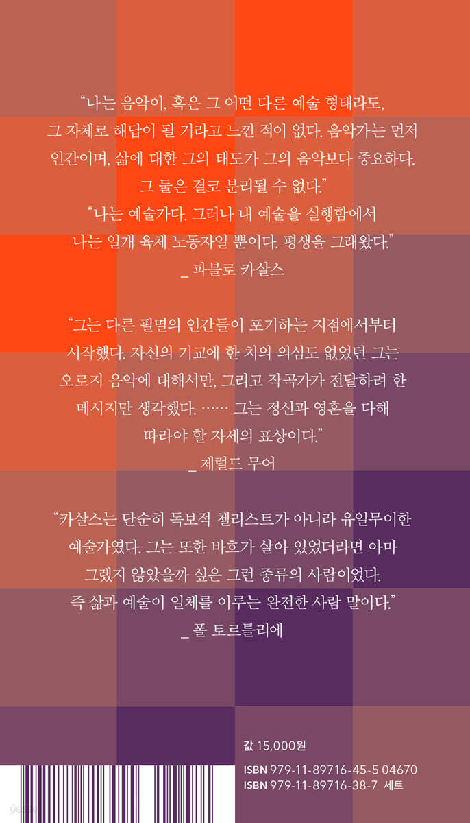 이 작은 책은 비단 음악을 사랑하는 분들뿐만 아니라 삶을 사랑하는 분들을 위한 것이기도 합니다. 이 책에 담긴 소박한 지혜의 말들은 파블로 카살스 생전만큼이나 지금도 진실한 울림을 지니고 있기 때문입니다. - Julian Lloyd Webber (첼리스트)