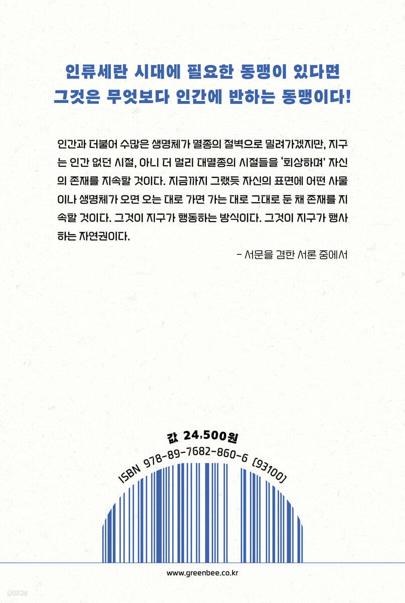 지구에 의한 철학을 해야 할 때! 도래한 기후위기 앞에서 지구가 묻는다 인간은 이 위기를 과연 어떻게 살아 내려는가? 『지구의 철학』은 지구를 대상으로 하는 철학이 아니라 지구를 주어로 하는 철학을 말한다. 그러나 기후위기로 요약되는 지구적 상황에서 우리 인간이 어떻게 살아야 하는가 하는 문제를 다룬다는 점에서 『지구의 철학』은 인간을 주어로 하는 철학을 요청하고 있기도 하다. 이렇듯 두 개의 다른 주체를 주어로 하는 이 철학은 지구에 의한 사유와 지구에 의해 인간 삶을 사유하는 방식으로 가동된다. 그러므로 ‘지구의 철학’은 즉 지구에 의한 철학이다. 하지만 『지구의 철학』은 기후위기를 설명하는 책은 아니다. 그렇다고 긴급한 위기에 대한 행동을 촉구하지도 않는다. 그런 책은 이미 충분하다. 진정 문제라고 생각되는 것은 사람들이 기후위기가 불러올 문제를 모르지 않는다는 사실이다. 우리는, 우리 인간은 그 답을, 해결책을 모르지 않는다. 다시 말하겠다. 우리는 기후위기와 관련한 우리의 현재 상황이 어떤지, 문제의 원인이 무엇인지, 그에 대한 답이 무엇인지 잘 알고 있다. 그런데도 우리는 그것을 해결할 기미를 전혀 보이지 않고 있다. 국제기상기구의 진단대로 위기는 코앞에 닥쳐왔으나 그러한 급박한 경고조차 소용이 없다. 머지않아 티핑 포인트라고 부르는 ‘기후 특이점’이 도래할 것이고, 이른바 ‘멸종’이나 ‘종말’ 같은 낱말로 서술되는 상황이 닥쳐올 것이다. 그렇기에 지금 그런 상황을 어떻게 연기하거나 저지할 수 있을까 하고 묻는 것은 어쩌면 무의미하거나 무력해 보인다. 사태가 이미 이러하다면, 위기 상황이 도래했을 때 던져야 할 중요한 물음은 우리가 어떻게 살아야 하는지, 위기의 지구를 어떻게 살아 내야 하는지일 것이다. 이제는 근거 없는 희망으로 계속 밀쳐 냈던 물음을 던져야만 할 때다. 이 책은 그런 물음을 던지며 그간 미루어 두었던 문제를 함께 사고해 보려 한다. 적어도 그런 사고의 촉발이 되고자 한다. 지금의 기후위기는 비인간들의 항의이자 저항이다! ‘인간’이라는 덫에서 벗어나라 지구에 의한 사유를 가동시키려는 물음은 사유의 장을 바꾸는 것에서부터 시작한다. 인간의 삶에 대한 근심 못지않게 인간 아닌 것들, 그리고 인간이 못 되었기에 죽더라도 숫자로 세어지지 않고, 사라져도 시야에 들어오지 않는 것들에 대해 새로이 사유해야 한다. 그런 비인간들과 인간들의 관계를 인간 중심의 시야에서 벗어나 사유해야 한다. 인간만큼이나 그들을 주어로 사유해야 한다. 이런 관점에서 우리는 지금의 기후위기를 그들 비인간의 행위나 인간을 향해 외치는 항의, 나아가 정치적 저항으로 볼 것이며, 사물이나 자연이라 불리는 것과 인간의 관계를 정치, 즉 ‘자연의 정치’로 불러들이고자 한다. 그리고 그들과 새로운 동맹을 사유할 사고의 단서들을 찾고 제안하려 한다. 인간을 등지고 배신하려는 이런 사유까지 나아가지 않는다면 ‘포스트휴먼’ 담론은 어쩌면 아직도 인간이란 덫을 벗어나지 못했다는 비판을 받아야 할 것이다. ‘나’라는 말을 유기체나 인격을 실체화하는 일인칭 단수가 아니라 수많은 미생물의 복합체로, 일인칭 복수로 바꾸어 사유해야 한다. 나 자신이기도 한 미생물의 관점에 섬으로써 우리는 ‘인간’이란 감옥에서 벗어날 수 있고, ‘나’의 삶과 운명을 사유할 수 있다. 폴리스 이전의 ‘오이코스’로 돌아가라 훼손의 권리가 아닌 돌봄의 의무로서의 정치를 위해 생존과 필연의 영역으로부터 분리된 정치, ‘폴리스’라는 말을 기원으로 삼는 정치적 사고를 넘어서 인간 아닌 것과 인간의 정치를 사고하려면, 우리는 경제학과 생태학의 어원이 되었던 생존의 장(오이코스)과 정치(폴리스)의 분리를 넘어서서 정치와 생존을 동시에 다룰 수 있어야 한다. 오이코스야말로 인간을 특권화하는 정치를 넘어 자연의 정치가 가동되는 정치의 장이다. 생존의 장에서 발생하는 이 자연의 정치는 그리스를 넘어, 그 이전의 기원으로까지 거슬러 올라갈 것을 요구한다. 즉 인류학자들의 ‘원시사회’와 비인간과 인간의 자연학적 ‘원시사회’로 거슬러 올라가야 한다는 말이다. ‘인디언’ 사회는 폴리스 이전의 정치야말로 진정한 정치, 민주주의라는 말에 값하는 정치였음을 보여 준다. 역으로 ‘먹이사슬’이라 불리는 먹고 먹히는 장이 증여와 포식의 정치로 포착되고, 증식과 회복이라는 상반되는 힘들이 충돌하는 장으로 포착될 때, 자연의 정치는 단지 은유가 아닌 현실로 드러날 것이다. 반면 가장이라는 자격을 가진 자들, 오이코스를 소유하고 지배하는 자들만의 폴리스라는 그리스적 정치는 자연적 정치의 장에 어떤 치명적 문턱을 도입한다. ‘가장’이라는 관념이 세금과 부역을 책임지는 대가로 자신의 가족을 ‘소유물’로 삼는 지위를 얻는 거래가 그 문턱에서 발생한다. 더불어 소유라는 관념에 함축된 ‘돌봄’의 의무라는 ‘원시적’ 관념을, ‘훼손’의 권리라는 그리스-로마의 문명화된 관념이 대체하게 된 과정도 보아야 한다. 오이코스와 분리된 폴리스란 단지 인간만의 영역으로 정