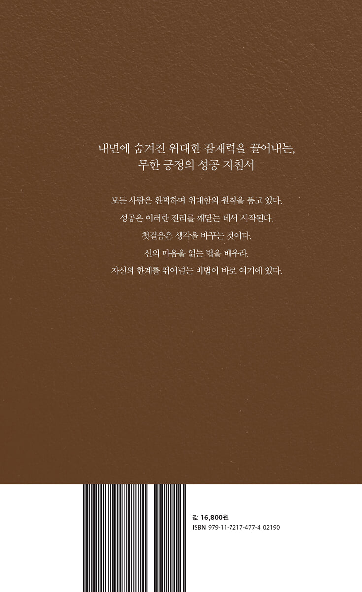 저자 서문 제1장 누구나 위대해질 수 있다 제2장 물려받은 것과 위대해질 기회 제3장 위대함의 원천은 무엇인가 제4장 신의 마음 제5장 신의 마음이 될 준비 제6장 신의 마음과 사회적 관점 제7장 신의 마음과 개인적 관점 제8장 신의 마음과 헌신 제9장 신의 마음과 인식 제10장 최고의 이상향을 생각하라 제11장 그 생각을 현실화하라 제12장 서두름과 습관 제13장 신처럼 생각하라 제14장 집에서의 행동 제15장 밖에서의 행동 제16장 관점에 관한 추가 설명 제17장 생각에 관한 추가 설명 제18장 위대함에 대한 예수의 생각 제19장 신의 마음과 진화의 관점 제20장 신의 섬김: 나와 타인에 대한 의무 제21장 정신 훈련 제22장 위대해지는 과학적 방법의 요약 부록 초영혼(The Oversoul) |