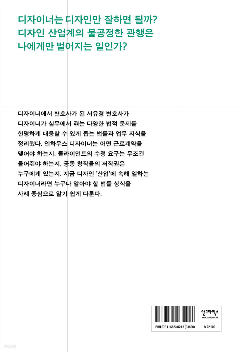 클라이언트의 수정 요구는 무조건 들어줘야 할까? 디자인 현장에서 활동하는 디자이너는 알게 모르게 실무에서 다양한 법적 문제를 마주한다. 인하우스는 디자이너는 당장 회사와의 협상을 통해 근로계약을 맺어야 하고, 프리랜서이거나 스튜디오를 운영하고 있다면 공급계약(용역계약) 등을 통해 연결되는 클라이언트와의 법률관계를 피할 수 없다. 크루나 팀으로 함께 창작하거나 스튜디오를 동업한다면 공동 창작물에 대한 저작권 문제가 발생할 수 있고, 만약 유튜브나 온라인 교육 플랫폼에서 활동하는 크리에이터가 되어, 1인 회사일지라도 개인이 아닌 법인이 된다면 법인으로서 알아야 할 법률 지식이 생긴다. 디자이너는 디자인만 잘하면 될까? 디자인은 산업이고, 디자인의 창의적 과정만큼이나 중요한 것이 법적 권리다. 견적서와 계약서 작성, 협상 전략, 저작권 보호 등 디자인 자체와 무관해 보이는 이러한 과정이 결국 창작물과 스스로를 보호하는 장치다. 이 책은 법률 용어가 낯설거나 법적 상황에 대한 경험이 없는 디자이너도 이해하기 쉬운 설명과 사례를 통해 법률문제를 직관적으로 이해하고 대응할 수 있게 했다. 계약서 예시, Q&A 등은 현장에서 바로 적용할 수 있는 유용한 자료다. 총 5부(10장)으로 짜여 있는 책의 1부 「디자이너의 계약과 협상」에서는 디자이너가 계약을 설계하고 관리하는 방법과 실무에서 마주하는 협상에서 원하는 결과를 얻기 위한 실질적인 전략을, 협상 전 체크리스트, 소통 방법, 비공개 협상 시 주의 사항 등 바로 활용할 수 있는 팀과 함께 제시한다. 2부 「디자이너의 계약과 협상」에서는 디자이너를 채용할 때 생길 수 있는 법적 이슈, 근로자의 권리와 임금 및 성과 보상 체계, 인하우스 디자이너의 저작권 문제를 다룬다. 3부 「디자이너와 클라이언트」에서는 ‘서비스’와 ‘용역’의 개념을 비교하고, 공급계약의 기본 개념부터 견적서와 계약서 작성법, 하자보수와 손해배상 등 계약 후 문제의 해결 방법을 자세히 풀었다. 4부 「디자이너의 공동작업」에서는 동업 관계에서 발생할 수 있는 법적 이슈와 공동작업에서 필요한 소통의 기술, 의견 충돌 문제의 해결을 다루며, 어시스턴트의 법적 지위와 권리 등 간과하기 쉬운 사각지대를 조명했다. 5장 「크리에이터와 플랫폼」에서는 디자이너가 크리에이터로 변모해 법인화하는 과정과 저작권 및 상표권 보호, 플랫폼과 계약할 때 주의할 약관 해석과 수익 정산 방식을 살폈다.디자이너들이 보다 효율적으로 업무를 하고, 예방만으로 충분하지 못해 불가피하게 발생하는 법적 문제에서 능동적이고 현명하게 대처하는 데에 이 책이 참고서이자 지침서 역할을 할 것이다. |