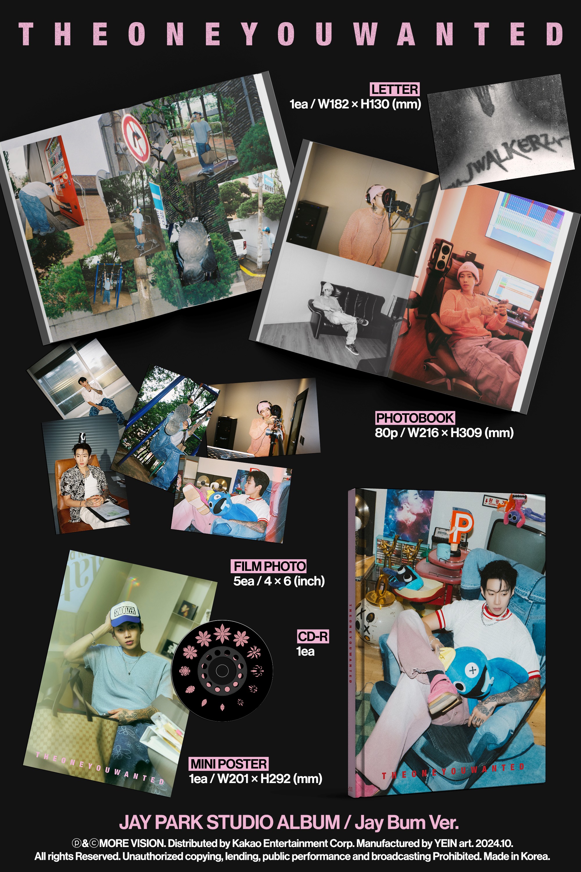 - CD-R : 1종 (버전 별 이미지 상이) - FILM PHOTO : 4 x 6 (inch) / 5종 삽입 (버전 별 이미지 상이) - MINI POSTER : W201 x H292 (mm) / 1종 삽입 (버전 별 이미지 상이) - LETTER : W182 x H130 (mm) / 1종 삽입 (버전 별 이미지 상이) |