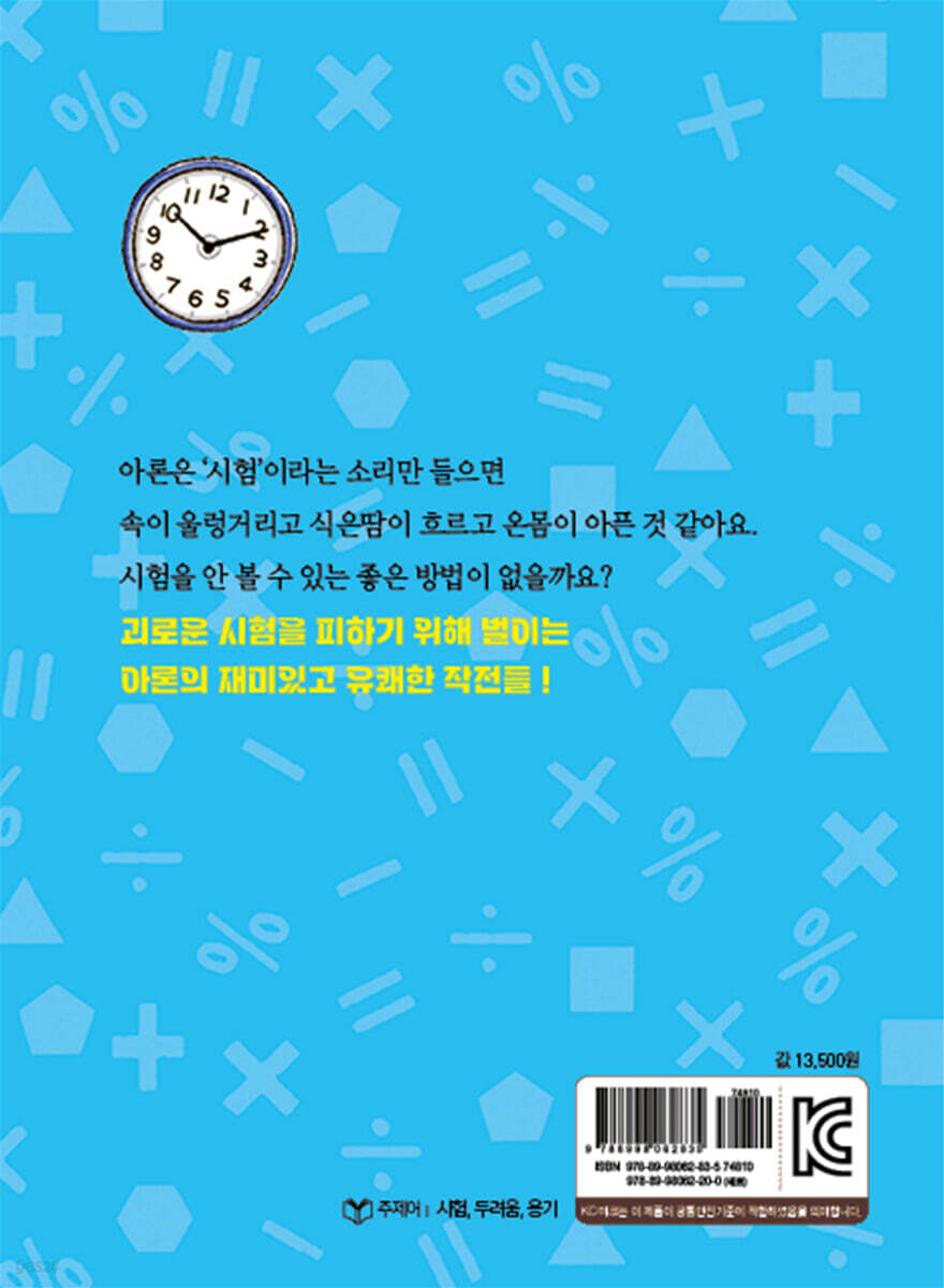 아론은 선생님의 말씀에 절대 찬성할 수 없었어요. 갑자기 속이 울렁거리면서 식은땀이 흘렀어요. --- p.6 아론은 긴 한숨을 쉬었어요. 가족도 전혀 도움이 되지 않았어요. 엄마나 삼촌이 위로해 주려는 건 알겠지만, 그것이 문제를 실제로 해결해 주지는 않으니까요. 바로 수학 시험 말이에요! “연습하면 잘할 수 있어. 열심히 준비하면 되는 거야.” 엄마는 아론의 머리를 쓰다듬으며 말했어요. 어른들은 항상 이렇게 말해요. 정말 짜증나요. --- p.15 “여러분! 우리는 너무 오랫동안 다른 사람이 만든 규칙에 얽매여 살았어요! 바로 시험이죠. 엄청난 스트레스를 받으며 시험을 보는 것은 우리 뜻이 아니잖아요. 그렇죠?” 그 모습을 본 나시르가 다가오며 말했어요. “야, 너 지금 뭐 하는 거야?” “내 권리를 위해 일어서는 거야.” 아론은 심각한 표정으로 말했어요. --- p.30 그때 선생님 책상 위에 놓인 종이 더미가 눈에 들어왔어요. 종이 맨 위에는 ‘수학’과 ‘시험’이라는 글자가 있었고, 그 밑에 문제들이 적혀 있었지요. 답은 보이지 않았어요. 아론이 슬쩍 고개를 들어 교실을 둘러보았어요. 사라는 교실 뒤편에서 새처럼 퍼덕거리며 젖은 치마를 털고 있었고, 선생님은 대걸레로 바닥을 닦고 있었어요. 반 아이들 모두가 떠들며 그 상황을 지켜보았지요. --- p.44 “아가야, 괜찮니? 네가 아프다고 동생이 그러던데.” 엄마는 걱정스러운 표정으로 아론의 이마를 짚었어요. “어머나, 머리가 뜨겁네. 오늘은 학교에 가면 안 되겠다. 엄마도 오늘 재택근무하는 날이지만 회의는 취소하면 돼. 닭고기 수프를 만들어 줄게! 그리고 어렸을 때처럼 책도 읽어 주고. 그러면 곧 나을 거야.” --- p.54 “그래. 힘들긴 하겠다. 그건 인정할게. 하지만 일단 시험을 보러 가 보는 건 어떠니? 네가 정말 그렇게 시험이 싫고 무섭다면 시험을 보러 가는 것만으로도 큰일을 해 내는 것이니까.” 아론은 확신이 서지 않았어요. 하지만 옆집 아저씨의 말은 저녁 내내 아론의 머릿속에서 맴돌았지요. --- p.60 “아니, 너를 여기 두고는 못 가지. 내가 시험 보기 싫다고 했던 것 기억나지? 그런데 나만 시험 때문에 스트레스 받는 게 아니란 걸 알고 나니까 기분이 나쁘지는 않네.” “무슨 소리야?” 케일이 물었어요. “그까짓 종이 한 장이 무서워서 화장실에 숨어 있다는 게 웃긴다는 말이야!” --- p.71 선생님이 아론의 답안지를 걷으며 빙긋 웃었어요. “아주 잘했어. 문제를 다 푼 것 같은데? 여기 앉아서 시험을 본다는 것이 네게는 힘든 일이었다는 걸 알고 있어. 시험 시간 전에 너를 찾으러 화장실에 갔다가 케일과 하는 얘기를 들었다. 아론, 너는 정말 좋은 아이야. 정말 칭찬해 주고 싶구나!” 아론의 얼굴이 달아올랐어요. 쑥스러웠지만 칭찬을 들으니 좋았지요. --- p.78 |