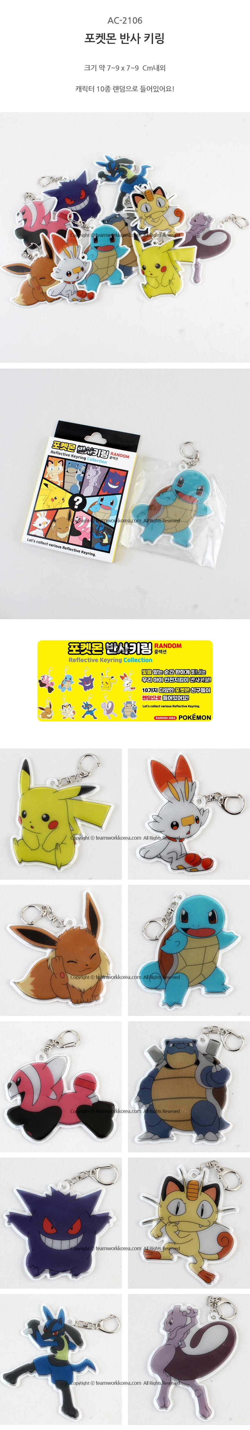 포켓몬 반사 키링/랜덤 캐릭터 피카츄 열쇠고리 ...