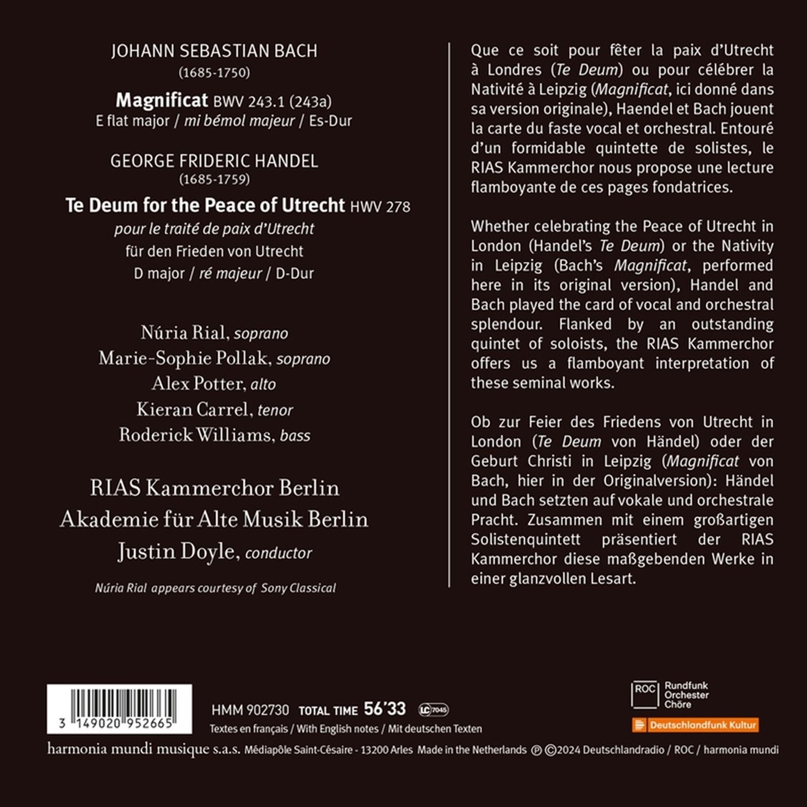 CD RIAS Kammerchor Berlin 바흐: 마니피카트 / 헨델: 위트레흐트 평화를 위한 테 데움 (Bach: Weihnachts-Magnificat / Handel: Utrecht Te Deum8)