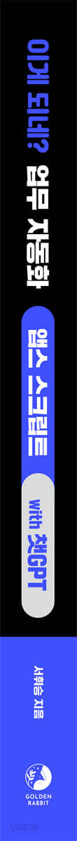 함께 모여서 함께 공부하고, 토론하고, 네트워크를 쌓으며 완독하면 더 탄탄하게 성장할 수 있습니다. 저자와 함께 앱스 스크립트 업무 자동화를 함께 공부하고 연구해보아요. - 오픈 카톡 : open.kakao.com/o/gBWRpyvg - 네이버 카페 : cafe.naver.com/gpto 어려운 내용은 유튜브 강의로 한 번 더 공부해요 꼭 필요한 프로젝트만 골라 유튜브 강의를 제공합니다. 글로 이해하기 어려웠던 부분, 또는 글로 이해했지만 한 번 더 설명이 필요한 부분을 동영상으로 만나보세요. - 유튜브 채널 : youtube.com/@editorp89 45가지 미친 자동화 예제코드를 모두 제공해요 책에서 제공하는 코드를 따라 작성하면서 학습하기를 추천하지만! 너무 바쁘고, 더 빨리 학습하고 싶고, 지금 당장 쓰고 싶은 독자를 위해 바로 복붙해서 쓸 수 있는 예제 코드를 제공합니다. - 실습 파일 다운로드 : vo.la/owKJxg ★ 물고기 잡는 법도 알려주고, 물고기도 함께 줍니다! ★ 업무 자동화 기본부터 카카오 연결 방법까지 상세한 실습 과정 설명 ★ 스프레드시트 활용, 단체 문자 전송, 슬랙 알림봇 등 바로 사용할 수 있는 45가지 미친 예제 제공 업무 자동화라는 넓고 유용한 바다에서 ‘효율’이라는 물고기를 잡는 방법을 배워보세요. 이 책은 업무 자동화를 위한 기본 지식부터 외부 데이터 연결 같은 고급 활용까지 차근차근 실습하여 누구나 따라 할 수 있도록 구성했습니다. 책을 읽고 나면 실습 예제 뿐만 아니라 여러분만의 응용 자동화 방법도 찾을 수 있을 것입니다. 또한 바로 먹을 수 있는 물고기도 함께 제공합니다. 책에 나온 모든 코드는 복사-붙여넣기 해서 사용할 수 있도록 온라인으로 제공합니다. ‘5장 앱스 스크립트 실전 업무에 활용하기’에서 배운 실습은 완성작 템플릿으로 제공하기 때문에 필요한 업무에서 바로 사용할 수 있을 겁니다. ★ 업무 자동화로 사내 시스템을 구축한 저자의 업무 자동화 노하우 한 스푼에 ★ 편집자가 독자의 눈으로 실습하며 자주 만났던 오류 포인트 두 스푼으로 ★ 더 확실하고 더 쉽게 배우고 실전에 사용할 수 있게 안내합니다! 이 책은 자동화 경험이 풍부한 저자의 노하우를 아낌없이 나눠줍니다. 챗GPT에게 업무 자동화 물어보기부터 카카오 연결 등 누구나 할 수 있는 실전 업무 자동화를 다룹니다. 어떤 내용들이 있는지 잠깐 맛보기 해볼까요? - 미친 활용 01 : 특정 단어만 모두 찾아 밑줄치고 싶다면? 서식 일괄 적용하기 - 미친 활용 02 : 매일 특정 시간에 실행할 수 있어요! 트리거로 매일 데이터 업데이트하기 - 미친 활용 03 : 전화번호 형식 통일하기 힘든가요? 자동으로 입력된 문자 형식 변경하기 - 미친 활용 04 : 프로젝트 일정 한번에 입력해요! 구글 캘린더 일정 한 번에 등록하기 - 미친 활용 05 : 클릭 한 번이면 문서 수정 끝! 폴더 안의 여러 파일 한 번에 수정하기 - 미친 활용 06 : 공공 데이터를 활용하고 싶다면? 공공 API로 부동산 정보 가져오기 - 미친 활용 07 : AI를 CS 직원으로 고용해요! 챗GPT 답변 받아서 고객 응대 문자 보내기 - 미친 활용 08 : AI에게 데이터 분석을 맡겨봐요! 스프레드시트 데이터 챗GPT로 분석하기 - 미친 활용 09 : 구글 밖에서도 쓸 수 있어요! 카카오톡으로 주가 알림 봇 만들기 이 책은 단순한 업무 자동화 책이 아니라 즉시 실무에 적용할 수 있는 업무 자동화 실용서입니다. 편집자가 45개의 실습을 모두 직접 따라 하며 자주 만난 오류나 유의할 사항도 따로 적어놓았으니 눈여겨봐 주세요. 책을 따라 학습하면서 ‘이런 점이 불편했는데 이렇게 해결할 수 있겠구나!’하며 여러분만의 업무 자동화 아이디어를 떠올려보기 바랍니다. ★ 배우기 · 응용하기, 문제 해결하기까지 ★ 챗GPT와 함께 더 효과적으로 학습해보세요! 코드를 처음 접해본 독자라면 막연히 어렵다고 생각할 수 있습니다. 하지만 챗GPT와 함께한다면 이 모든 걱정을 해결할 수 있습니다. ‘with 챗GPT’ 코너를 통해 실습 중간중간 챗GPT와 함께 자동화 코드를 만드는 방법을 설명합니다. 본문에서 배운 내용을 활용하여 원하는 부분을 바꾸는 질문, 챗GPT와 함께 오류를 해결해나가는 질문들을 참고하면 여러분도 금방 챗GPT와 자동화 코드를 짤 수 있을 거예요. 질문을 할 때 어떤 형식을 쓸지, 어떤 정보를 넣으면 좋은지 등 프롬프팅 팁도 알차게 담았습니다. ★ 왜 구글 앱스 스크립트로 자동화를 해야 하냐고요? ★ 24시간 365일 서버 없이 계속 돌아가니까요! 파이썬으로 자동화를 하려면 내 PC를 항시 켜두거나, 서버를 마련해야 합니다. 반면 구글 워크스페이스를 사용하면 그런 번거로움에서 벗어날 수 있다는 뜻입니다. 또한 오늘날 구글 워크스페이는 워드, 스프레드시트(엑셀), 캘린더 등 다양한 도구를 제공하고 있어, 더 강력한 자동화를 구현할 수 있습니다. 따라서 이 책은 구글 워크스페이스와 앱스 스크립트를 이용해 미친 자동화의 끝판을 구현해 제공합니다. 아직 구글 앱스 스크립트가 낯선 분들이 자주 하는 3가지 질문에 답을 해봅니다! 〈하나〉 구글 앱스 스크립트가 뭐예요? 구글 앱스 스크립트는 구글 워크스페이스의 앱들을 연결하고 자동화할 수 있는 클라우드 기반 스크립트 언어입니다. 자바스크립트를 기
