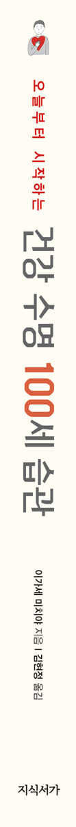 대사 증후군이 무서운 이유는 내장 지방형 비만을 시작으로 혈압과 콜레스테롤 수치, 중성 지방 수치, 혈당 수치 등이 하나씩 하나씩 도미노가 쓰러지듯 연이어 악화되기 때문이다. 게이오대학교 이토 히로시 교수는 이러한 현상을 ‘메타볼릭 도미노’라고 부른다. (…) 메타볼릭 도미노를 흐르는 강물에 비유한다면, 최대한 상류에서 그 물줄기를 막아 버리는 것이 중요하다. 그러면 하류로 가면서 점점 확산되는 다양한 질환의 발병을 좀 더 일찍 예방할 수 있기 때문이다. 이 책에서는 ‘100세까지 건강하게 살기’ 위해서 메타볼릭 도미노의 진행을 멈추는 ‘100가지 습관’을 소개하고자 한다. --- 「들어가는 말」 중에서 ‘위장을 80%만 채우기’가 건강에 좋다는 것은 현대 의학의 관점에 비추어 봐도 분명한 사실이다. 배부르지 않게 먹으면 칼로리 섭취를 자연스럽게 줄일 수 있다. 칼로리를 제한하면 물질 속에 존재하는 '서투인'이라는 ‘장수 유전자’가 활성화되는데, 이 유전자는 혈관의 노화를 방지하는 등 세포 노화를 억제하는 매우 중요한 기능을 한다. 섭취 칼로리를 평소의 70% 수준까지 줄인 벵골원숭이는 평소대로 섭취한 벵골원숭이에 비해 수명이 늘어났을 뿐 아니라 훨씬 어려 보이고 뇌가 활성화되는 효과가 있었다는 연구 결과가 있다. 이는 혈관 건강을 유지함으로써 몸 전체의 건강 상태에 좋은 영향을 준 것이라 볼 수 있다. 또 배부르지 않게 먹으면 당질과 지질의 과잉 섭취를 줄일 수 있다. --- p.001 「배부르기 전에 숟가락을 내려놓는다」 중에서 장내 환경을 개선하려면 수용성과 불용성을 모두 섭취하는 것이 중요하다. 그런데 식이 섬유 섭취량은 해마다 감소해 현재 일본인의 경우 하루에 14g 정도에 불과하다. 목표 섭취량이 18~21g이므로 4~7g 정도 부족한 셈이다. ‘혈액이 온몸을 순환한다’는 주장을 처음으로 한 사람은 17세기 영국의 의사 윌리엄 하비(1578~1657)다. 그의 주장대로 혈액은 우리 몸 구석구석까지 영양과 산소를 보내는 ‘배달부’이면서 동시에 유해 물질과 노폐물을 회수하는 ‘청소부’의 역할을 한다. 그렇기 때문에 음식으로부터 영양을 흡수하는 장소인 장이 더러우면 전신 세포로 더러운 혈액이 운반될 것이라는 말도 틀린 말은 아니다. 그러니 식이 섬유를 열심히 먹어 장이 몸 전체로 신선한 혈액을 보내게 만들자. --- p.019 「식이 섬유를 섭취한다」 중에서 한 발 서기 가능 시간이 20초 미만인 사람은 ‘무증상 열공성 뇌경색’, ‘무증상 미세 뇌출혈’이 있을 가능성이 높다는 사실이 밝혀졌다. 이는 나중에 뇌졸중이 발병할 가능성이 높다는 점을 시사한다. 한 발 서기와 수명에 관한 연구는 현재 전 세계에서 이루어지고 있다. 브라질 연구 팀이 1,702명을 대상으로 실시한 조사에 따르면, 한 발 서기 자세를 10초도 유지하지 못한 피험자의 7년 후 사망률은 17.5%에 달하며, 한 발 서기 자세를 10초 이상 유지한 사람에 비해 어떠한 원인으로 인해 사망할 위험이 84%나 높다는 사실이 판명되었다. (…) 한 발 서기를 매일 하면, 허벅지의 대퇴 사두근과 햄스트링을 강화할 수 있다. 또한 뼈에 적당한 자극을 주어 골밀도를 높이는 효과도 있다. 1분간 한 발 서기를 1일 3회 실시하면 발목뼈에는 50분 걷는 것과 비슷한 정도의 부하가 가해진다. 한마디로 매우 효율이 뛰어난 운동이다. --- p.040 「균형력을 키운다」 중에서 영국의 의학 전문지 《랜싯》은 만약 난청을 겪는 사람이 하나도 없다면 치매에 걸리는 사람이 지금보다 9%나 감소할 것이라 추산했다. (…) 난청인 경우, 예를 들어 “안○○○요”라고밖에 들리지 않는다면 뇌는 그 말을 제대로 듣는 사람보다 훨씬 많은 에너지를 써야만 무슨 말인지 이해할 수 있다. 상대방이 무슨 말을 하는지 파악하려고 할 때마다 뇌에 부담과 스트레스가 가해지고, 그러면 뇌가 다른 중요한 기능을 할 여유가 없어져 결과적으로 전체적인 인지 기능이 떨어지게 된다. (…) 2016년 미국 노년 의학 잡지에 게재된 연구에 의하면, 보청기를 사용한 난청인 그룹은 사용하지 않는 난청인 그룹에 비해 치매 위험과 인지 기능 저하 위험이 감소했다는 사실이 밝혀졌다. 현재는 보청기 성능도 향상되었고, 디자인도 예쁜 것이 많다. 주위 사람들과 원활하게 대화하며 뇌의 노화를 예방하기 위해서 보청기를 적극적으로 이용하면 좋겠다. --- p.057 「보청기를 끼고 대화한다」 중에서 |