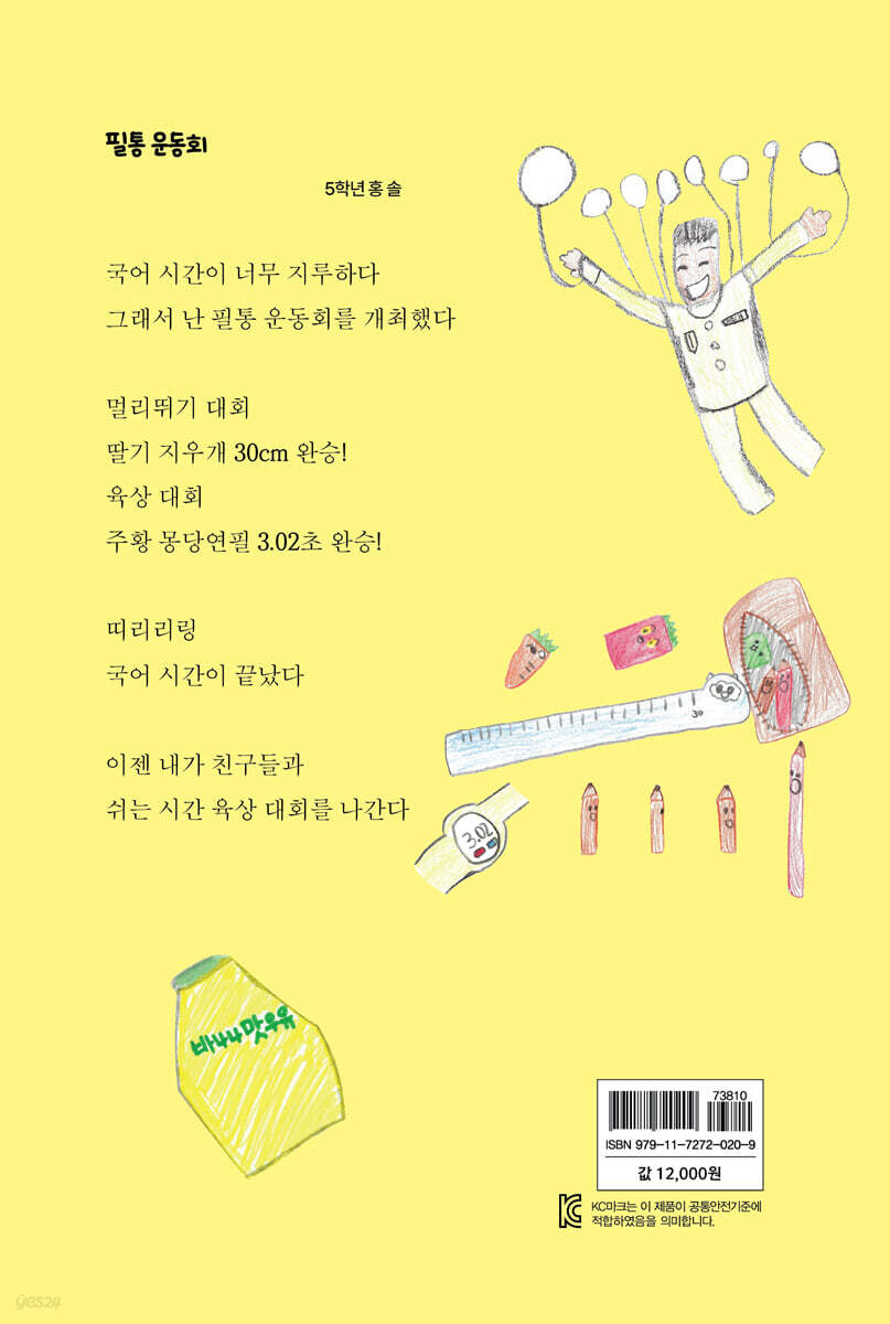 초대 동시(할머니 별/유리컵 구워먹기) 1학년 조단희-내 기분은 무슨 색깔일까 윤하준-내 기분은 파란색 정지원-지금 내 기분 김도겸-내 기분은 노랑 안지우-내 기분은 푸른 연두색 윤강호-내 기분은 파랑색 장민설-긴 바나나 김병지-신나는 기분 김승후-내 기분은 2학년 이루다-밤하늘을 별을 보면/내 마음의 색깔/동물의 소리 박병우-하늘 색깔/아름다운 색 강서아-민트색/내 기분은 무지개색 조 셉-노란색/핸드폰 강준우-초승달 이정현-내 기분의 색/무지개 최지안-노란색 불빛/분홍색 함소윤-파란색/분홍색 홍 율-푸른색/꼭 푸른 색은 아니다 심윤우-푸른색/검정 정윤재-엄마가 화났다/오늘이 좋다 3학년 김성찬-내 색깔은 무슨 색/짜장면/지각은 오, 노우 신민규-5학년 선생님 손시준-난 공룡이 좋아/엄마가 보고 싶다 박수범-물은 필요한 존재/곤충학교 최준표-동생하고 놀아주기 싫은데/어머니/치킨 vs 피자 오제우-엄마는 밤이 되면 휴대폰을 달라고 한다/선생님이 좋은 이유 이태민-과학책과 숨바꼭질 안태윤-내 기분은 카멜레온/내 마음은 파랑 4학년 김희찬-색깔 이윤재-와, 4교시다/선생님 이훈민-라면 파티/내 기분은 보라색 조수아-수업/와, 방학이다 이범수-지금 내 기분은 무슨 색 오제승-선생님과 첫 만남/기쁨은 좋아 김재한-놀고 싶다 염정수-무지개/선생님 윤하선-체육시간 5학년 홍 솔-필통 운동회/연두색/마시멜로 이서윤-주황색 하늘색/학교 모험 장효빈-우리 학교에 있는 책/내 기분은 무지개색이다 박찬주-맑고 푸른색/우리 학교 복도 김서연-1박 2일 철원 갔던 날 신지아-학교에 있는 여러 가지 감정 구슬/하늘에 올라가면 노현영-학교 남수진-기분 코인 심영우-롤러코스터/우리 반 6학년 신승헌-지금 내 기분은 어떤 색?/즐거운 우리 학교 이시후-과목마다 색깔이 변하는 내 기분/작은 우리 학교 김도윤-기분의 색/우리 학교 쉬는 시간 이찬민-내 기분/우리 학교 김나연-내 기분의 색깔/수업시간 불청객과 술래잡기 송은채-알록달록 내 기분/화목한 우리 반 이정음-초록색으로 가득한 내 기분/우리 학교 안우현-오색찬란한 내 마음 박병준-여러 가지 색의 내 기분 이효준-나의 기분/우리 학교 남연우-내 기분/우리 학교 박시후-무지갯빛 내 기분/맛있는 급식 안정우-무지갯빛 나의 기분/아주 짧은 쉬는 시간 염준수-노란색 내 기분/우리 학교 6학년 쉬는 시간 여은찬-내 기분은 어떤 색깔/우리 학교 김효민-무지개 물감/우리 반 친구들 5, 6학년 함께 쓰는 동시 판다 눈 주위가 까만 5가지 이유/산타할아버지/숲 속 동물들/나의 사춘기/방귀 팝콘/엄마, 미안해요/잔소리 |