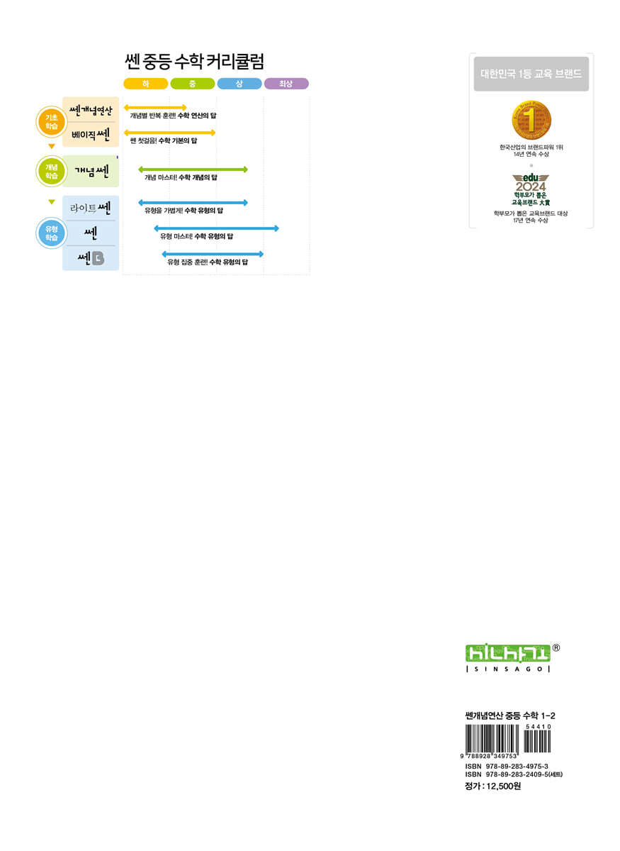 1. 2022 개정 교육과정을 충실히 반영 2. 수학 기본기 강화를 위한 최적의 학습 시스템 구현 3. 빈틈없는 개념 학습과 체계적인 개념 적용 반복 훈련 4. 학습 편의를 위해 학습 플래너, 빠른 정답 찾기 제공 개념별 연산 강화 프로젝트 [쎈개념연산] 1. 학습자 눈높이에 맞춘 개념 설명으로 개념을 쉽게! 2. 충분한 반복 훈련으로 연산을 빠르고 정확하게! 3. 빈틈없고 체계적인 문제 구성으로 기본기를 탄탄하게! [쎈개념연산]을 통해 정확한 개념 이해를 바탕으로 문제 적용 훈련을 반복함으로써 탄탄한 기본기를 쌓고 자신감을 얻을 수 있습니다! 진정한 실력은 탄탄한 기본기에서 시작됩니다. [쎈개념연산]과 함께 진정한 실력을 키워보세요! |