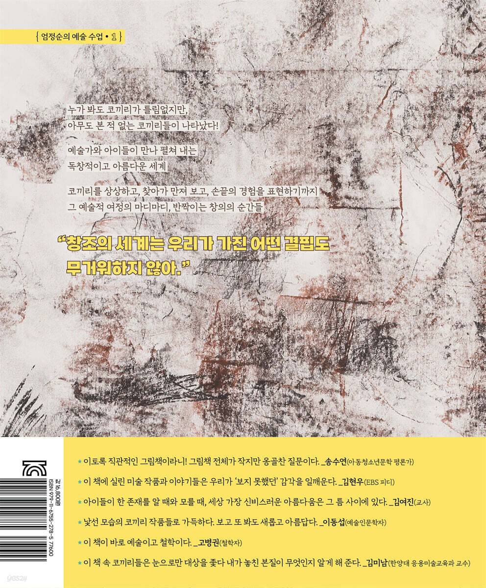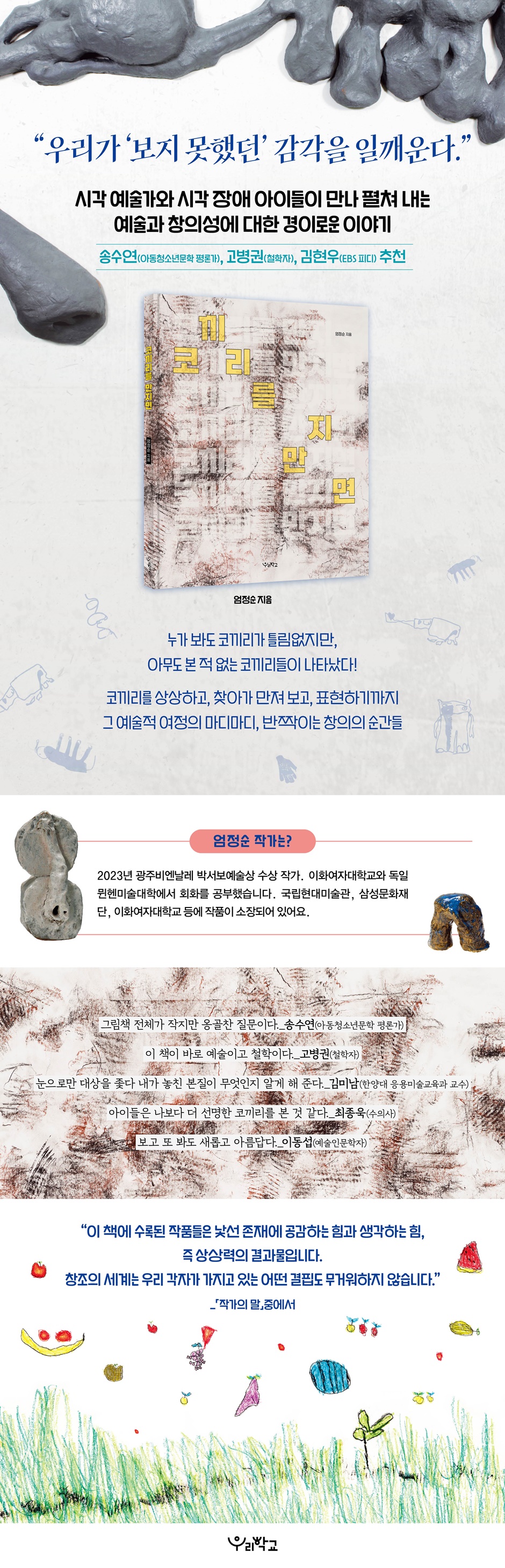 ★ 엄정순 작가님과 시각 장애인 학생들의 전시 〈코끼리 주름 펼치다〉에서 처음으로 놀라운 코끼리 작품을 만났다. 그때의 낯섦, 경이, 그로 인한 생각의 확장 그 모든 것이 이 그림책을 열자 다시 떠올랐다. 이 책 속 코끼리들은 눈으로만 대상을 좇다 내가 놓친 본질이 무엇인지 알게 해 준다.