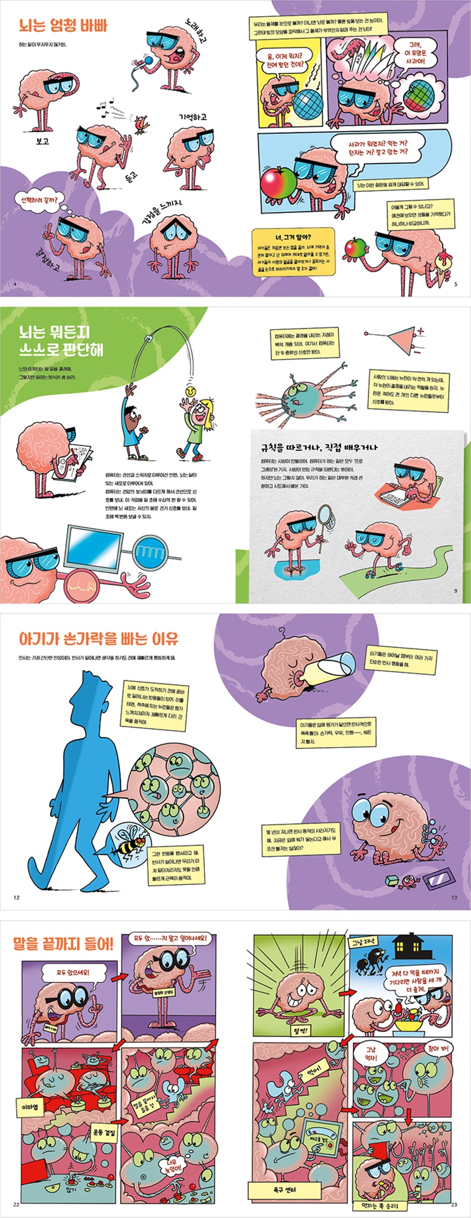 뇌 vs. 컴퓨터 뇌는 뭐든지 스스로 판단해 이게 무슨 소리지? 아기가 손가락을 빠는 이유 배가 고플 때는… 보상과 벌칙 균형은 소뇌 담당! 뇌가 모든 걸 조종해 말을 끝까지 들어! 성공하려면 의지력이 필요해 버스를 타려면 계획부터! 앞일을 예측하고 계획을 세워! 뇌도 가끔은 휴식이 필요하다고! 말랑말랑 두뇌 용어 사전 |