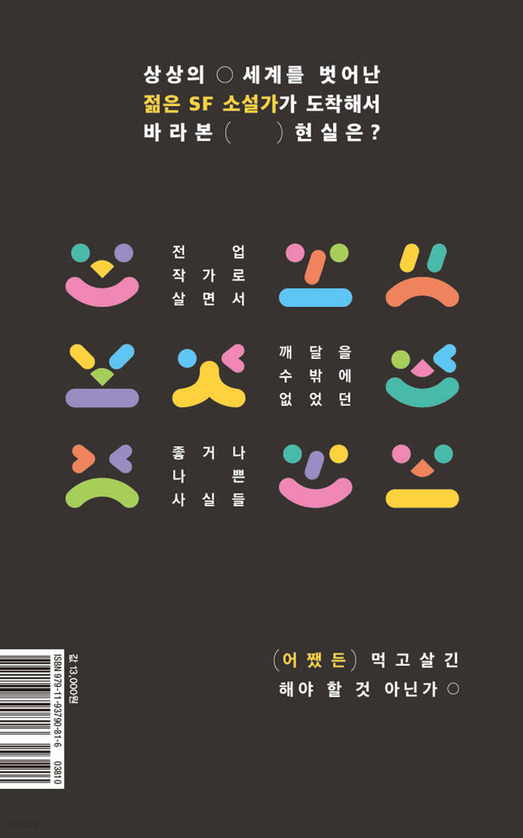 페이지를 넘길수록 뜨거운 조소가 넘치는, 젊은 SF 작가의 신개념 리얼리즘 ‘서장_자기소개서: 작가’라는 첫 번째 장에서 저자는 작가, 그중에서도 SF 작가라는 정체성을 밝히고 글을 써서 먹고살게 된 계기를 이야기한다. 먼저 저자는 학생 시절 학업과 관련한 주위의 기대와 스스로의 오만함이 빚어낸 정신적인 문제에 대해 고백한다. 그런 정신병들이 저자의 삶을 심각하게 위협하기도 했지만 그 정신적인 문제들마저 심너울이라는 한 사람, 한 명의 소설가를 이루는 정체성의 하나가 되었음을 인정한다. ‘1장_존재 가능한 세계관의 다양성’에서는 전업작가의 일 그 자체인 ‘이야기’에 대한 주관적인 생각을 펼친다. 먼저 저자의 첫 장편소설 《소멸사회》가 어떻게 “문학사의 심연으로 가라앉았”(41쪽)는지 담담히 서술하면서, 이야기의 바탕이 되는 작품의 ‘세계관’에 대해 이야기한다. 뒤이어 박완서의 단편 〈나의 가장 나종 지니인 것〉과 영화 〈반지의 제왕〉 시리즈를 예시로 들며, 잘 구축된 세계관이 어떻게 현실보다 더 현실적으로 다가오는지를 역설한다. ‘2장_세계를 바라보는 렌즈: 예술에서의 형식에 대하여’에서는 저자가 신문 칼럼, 드라마 대본 등 다양한 서사 형식을 경험한 뒤 “서사예술의 선구자”로서 소설이 넘나들 수 있는 경계에 대해서 이야기한다. 저자가 출판 업계의 인세나 원고료와는 비교가 안 되는, 말 그대로 ‘거부할 수 없는’ 조건을 제시받고 드라마 대본을 쓰면서 배운 것은 단순히 두 업계 매출 규모의 차이만이 아니었다. 1~2장에서 개인적인 서사와 이력을 고백한 저자는 ‘3장_세상 이해하는 척하기’에서 더 솔직해진다. “작가라는 존재가 흥미로운 관점을 가진 시대의 증언자일 때 가장 빛난다고 믿는다”(115쪽)고 말하면서 전업작가의 눈으로 본 아이러니하고 기이한 세상을 ‘증언’한다. 인공지능에 침입당한 문화예술계, 원고료나 증정본, 도서정가제 같은 현실적인 문제에 관한 생각을 ‘글쟁이’다운 위트를 섞어 풀어놓는 한편, 인공지능으로 돈 버는 방법을 상상하면서 말 그대로 세상을 이해하는 척한다. ‘4장_타인의 천국’에서는 소설가 심너울이 이야기의 세계를 짓는 데 영향받은 작품들을 소개하고, 2024년 3월에 출간한 장편소설 《갈아 만든 천국》을 통해 깨닫게 된 것들을 이야기한다. 작가라는 직업 자체가 대체로 우울한 만큼, 젊은 전업작가가 바라보는 현실은 그다지 유쾌하지 않다. 소설가로서 심너울은 책 판매량을 비교하며 동료 작가를 질투하고, 그래놓고 괴로워하고, 그 자신은 조금이라도 더 독자들 이목을 끌려고 발버둥 치는데 베르나르 베르베르는 지극히 흔한 일반명사인 ‘고양이’를 신작 제목으로 삼는 것을 보고 경악하며, 문학수첩에서 나올 이 책이 문학수첩의 대표작인 《해리 포터》와 경쟁하게 될 것을 걱정한다. 인간 심너울 역시 결코 낙관적인 사람이 아니다. 낙관적이기는커녕 “타고나기를 음울한 사람”인 데다, “평생 우울증에 시달릴 것”(이상 230쪽)이라고도 느낀다. 인간의 삶은 기본적으로 무작위하고 예측 불가능한 것이라고 생각하며, 4장의 〈오이디푸스 왕〉에 대해 이야기하는 부분에서는, 인간 지성에 몹시 회의적인 영국의 정치철학자 존 그레이처럼, “나는 자유의지라는 건 존재하지 않는다고 본다”고 말하기도 한다. 매일매일 글을 쓰면서 매일매일 전업작가 생활을 때려치우는 그날을 꿈꾼다. 그럼에도 심너울은 계속 쓴다. 이야기를 사랑하기 때문이며, 글을 쓰는 행위 자체가 그 자신의 정신적 고통을 다스리는 데 큰 도움이 된다고 믿기 때문이다. 그리고 존 그레이가 계속 책을 쓰듯, 무엇보다 세상을 이롭게 하는 데 이야기를 짓는 작가의 몫도 있다고 생각하기 때문이다. 그럼에도 나는 낙관하고자 한다. 혹시나 내 책을 읽고 공감해 주는 사람이 있을지도 모른다. 잘하면 내 시나리오가 영상화될 수도 있을 것이다. 어쩌면 나는 오랜만에 행복할 수도 있고, 즐거울 수도 있다. 그런 일이 일어날 수도 있다. 불가능한 일이 아니다. 그렇게 낙관해야만, 나는 한 글자라도 더 쓸 수 있다. 당신이 이 텍스트를 읽고 있다면 내 낙관이 어느 정도 들어맞은 셈이니, 다행이다.(‘종장_오징어가 흉년이면 뭐 고등어는 풍년이겠지’에서) |