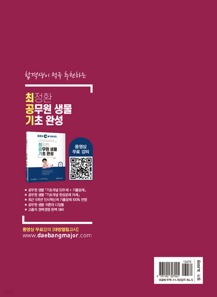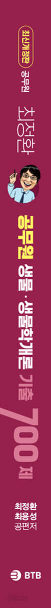 CHAPTER 01 세포의 생활ㆍ38 CHAPTER 02 세포의 생식과 유전학ㆍ109 CHAPTER 03 진화와 생물의 다양성ㆍ176 CHAPTER 04 동물의 구조와 기능ㆍ204 CHAPTER 05 생태학ㆍ281 CHAPTER 06 식물의 구조와 기능ㆍ298 PART 02 연도별 기출문제 [9급 공무원] 01 2024년 전라남도 9급 생물ㆍ 322 02 2024년 충청남도/충청북도 9급 생물ㆍ 327 03 2024년 서울특별시 9급 생물ㆍ 332 04 2024년 전북특별자치도 9급 생물ㆍ 337 05 2024년 경상북도 9급 생물ㆍ 341 06 2024년 상반기 경기도 9급 생물ㆍ 344 07 2023년 하반기 경기도 9급 생물ㆍ 348 08 2023년 서울특별시 8급/9급 생물ㆍ 352 09 2023년 부산광역시 9급 생물ㆍ 357 10 2023년 전라북도 9급 생물ㆍ 361 11 2023년 경상북도 9급 생물ㆍ 365 12 2023년 상반기 경기도 9급 생물ㆍ 370 13 2022년 전라남도 9급 생물ㆍ 374 14 2022년 충청북도 9급 생물ㆍ 379 15 2022년 6월 서울특별시 8급/9급 생물ㆍ 382 16 2022년 전라북도 9급 생물ㆍ 387 17 2022년 경상북도 9급 생물ㆍ 390 18 2022년 상반기 경기도 9급 생물ㆍ 394 19 2022년 세종특별시 9급 생물ㆍ 398 20 2022년 2월 서울특별시 8급/9급 생물 ㆍ 402 21 2021년 하반기 경기도 9급 생물ㆍ407 22 2021년 10월 전라남도 8급 생물ㆍ412 23 2021년 7월 전라남도 9급 생물ㆍ416 24 2021년 서울특별시 8급/9급 생물 ㆍ422 25 2021년 대전광역시 9급 생물ㆍ426 26 2021년 전라북도 9급 생물ㆍ430 27 2021년 경상북도 9급 생물ㆍ434 28 2021년 상반기 경기도 8급/9급 생물ㆍ437 29 2020년 하반기 광주광역시 8급/9급 생물ㆍ441 30 2020년 전라북도 9급 생물ㆍ446 31 2020년 서울특별시 8급/9급 생물ㆍ449 32 2020년 부산광역시 9급 생물ㆍ453 33 2020년 상반기 광주광역시 9급 생물ㆍ458 34 2020년 상반기 경기도 9급 생물ㆍ464 [7급 공무원] 01 2024년 국가직 7급 생물학개론ㆍ 468 02 2024년 지방직 7급 생물학개론ㆍ 472 03 2023년 국가직 7급 생물학개론ㆍ 476 04 2023년 지방직 7급 생물학개론ㆍ 480 05 2022년 국가직 7급 생물학개론ㆍ 484 06 2022년 지방직 7급 생물학개론ㆍ 489 07 2021년 국가직 7급 생물학개론ㆍ 493 08 2021년 지방직 7급 생물학개론ㆍ 498 09 2020년 국가직 7급 생물학개론ㆍ 502 10 2020년 지방직 7급 생물학개론ㆍ 507 [정답 및 해설] 9급 정답 및 해설ㆍ512 7급 정답 및 해설ㆍ583 |