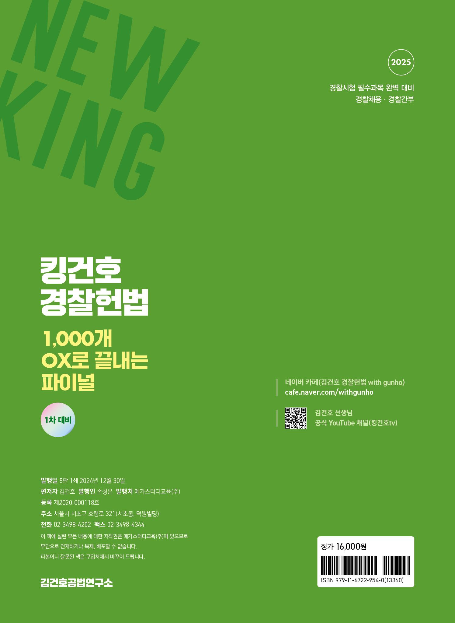 『2025 킹건호 경찰헌법 1,000개 OX로 끝내는 파이널-1차 대비』의 특징은 다음과 같다.