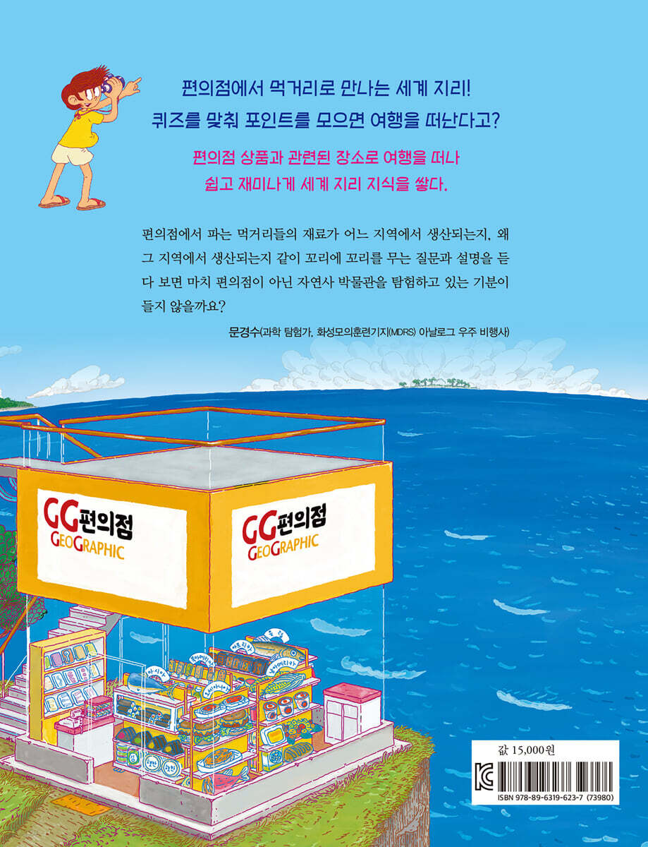 작가의 말 프롤로그 - 신장개업! GG편의점 첫 번째 참치마요 삼각 김밥의 비밀 대륙 1 아시아 | 대양 1 태평양 편의점에 지리 더하기_ 가장 많은 사람이 사는 아시아 / 지구에서 가장 큰 바다, 태평양 오늘의 편의점 상품 들여다보기_ 참치마요 삼각 김밥 재료는 어디에서 왔을까? 지금 세계는_ 아시아와 태평양, 지금은 어때? 정보 TMI_ 삼각 김밥 이야기 두 번째 팬케이크와 핫바는 생각보다 더 어울려 대륙 2 북아메리카 | 대양 2 북극해 편의점에 지리 더하기_ 기후가 다양한 북아메리카 / 천연 자원과 해산물이 풍부한 북극해 오늘의 편의점 상품 들여다보기_ 메이플 시럽 재료는 어디에서 왔을까? / 핫바 재료는 어디에서 왔을까? 지금 세계는_ 북아메리카와 북극해, 지금은 어때? 정보 TMI_ 메이플 시럽 이야기 / 핫바 이야기 세 번째 최고의 초콜릿바닐라 아이스크림을 찾아서 대륙 3 아프리카 | 대양 3 인도양 편의점에 지리 더하기_ 사하라 사막과 나일강이 있는 아프리카 / 아름다운 섬이 많은 인도양 오늘의 편의점 상품 들여다보기_ 초콜릿 재료는 어디에서 왔을까? / 바닐라 아이스크림 재료는 어디에서 왔을까? 지금 세계는_ 아프리카와 인도양, 지금은 어때? 정보 TMI_ 초콜릿 이야기 / 바닐라 이야기 네 번째 태양과 바다의 콜라보로 탄생한 파스타 대륙 4 유럽 | 대양 4 대서양 편의점에 지리 더하기_ 듀럼밀과 올리브가 자르는 유럽 / 역사적으로 중요한 의미를 가진 대서양 오늘의 편의점 상품 들여다보기_ 파스타 재료는 어디에서 왔을까? / 올리브유 재료는 어디에서 왔을까? 지금 세계는_ 유럽과 대서양, 지금은 어때? 정보 TMI_ 대구 이야기 / 올리브와 파스타 이야기 다섯 번째 지구 반대편까지 가서 만난 콘치즈 불꼬꼬볶음면 대륙 5 남아메리카 편의점에 지리 더하기_ 지구의 허파, 아마존강이 있는 남아메리카 오늘의 편의점 상품 들여다보기_ 콘치즈 불꼬꼬볶음면 재료는 어디에서 왔을까? 지금 세계는_ 남아메리카, 지금은 어때? 정보 TMI_ 옥수수 이야기 / 고추 이야기 여섯 번째 초원이 펼쳐지는 햄버거와 연어 샌드위치 대륙 6 오세아니아 | 대양 5 남극해 편의점에 지리 더하기_ 여러 섬으로 이루어진 오세아니아 / 남극 대륙과 남극해 오늘의 편의점 상품 들여다보기_ 햄버거 재료는 어디에서 왔을까? / 연어 샌드위치 재료는 어디에서 왔을까? 지금 세계는_ 오세아니아, 지금은 어때? / 남극해 지금은 어때? 정보 TMI_ 햄버거와 쇠고기 이야기 / 연어 이야기 에필로그 |