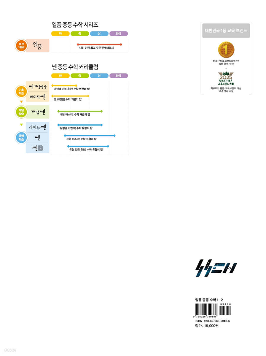 1. 2022 개정 교육과정을 충실히 반영 2. 내신 빈출 유형을 완벽하게 분석하여 중상~최상 난이도 문제까지 구성한 고난도 교재 3. 창의적 사고력과 문제 해결력 향상을 위한 집중 학습 1. 내신 기본 다지기를 위한 개념 학습과 기출 문제 연습 전국 중학교 중간·기말고사 문제를 철저히 분석하여 이를 바탕으로 출제 빈도가 높은 핵심 개념을 정리하고, 시험에 자주 출제되는 유형을 뽑아 기본 학습에 충실할 수 있도록 구성하였습니다. 또 교과서 핵심 개념과 연계되는 심화 개념 또는 상위 개념 설명과 함께 관련 문제를 구성하여 변별력을 요구하는 문제를 보다 쉽게 해결할 수 있도록 하였습니다. 2. 내신 만점 달성을 위한 입체적인 문제 구성 내신 만점의 목표 달성을 위해 내신 빈출 유형을 분석하여 중상위 수준의 "만점 도전을 위한 고난도 문제"와 내신 만점의 실력을 굳히기 위한 최상위 수준의 "최상위로 가는 최고 수준 문제"를 구성하였습니다. 그리고 중간·기말고사 대비를 위해 대단원별로 "학교 시험 실전 TEST"를 구성하였습니다. 3. 창의적 사고력과 문제 해결력 향상을 위한 집중 학습 창의적 사고력을 기를 수 있도록 사고력 창의문제를 구성하였고, 문제 접근 방법과 체계적인 풀이를 제시하여 문제 해결력을 향상시킬 수 있도록 하였습니다. |