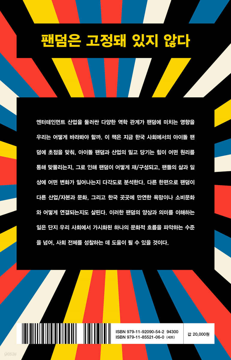1장 새로운 팬덤의 풍경 1. 새로운 팬덤의 등장과 다른 방식으로 팬덤 읽기 - 2. 어떻게 새 팬덤을 다른 방식으로 읽을 것인가 2장 생산과 소비 사이, 놀이와 노동 사이 1. 시청자를 생산자로 호명하는 텍스트: 리얼리티 오디션 프로그램 - 2. 놀이/노동으로서의 팬덤 - 3. 놀이/노동의 붕괴와 이후의 리얼리티 오디션 프로그램 팬덤 3장 커뮤니케이션을 소비하는 팬덤 1. 팬 플랫폼의 등장과 확산 - 2. 플랫폼에 갇힌 팬덤과 그 작동 구조 - 3. 팬 플랫폼과 함께 살아가는 팬들, 그리고 그들의 인지/감각 4장 가상과 현실 사이에 놓이는 아이돌 1. 디지털 실감 기술과 아이돌 산업의 결합 - 2. 가상 아이돌과 가상+현실 아이돌 위치 짓기 - 3. 가상(+현실) 아이돌을 둘러싼 이슈, 그리고 팬덤 5장 엔터테인먼트 산업, 그리고 팬덤 내다보기 1. 최근 엔터테인먼트 산업 내 주요 이슈 - 2. 팬덤의 미래: 다시 팬덤을 팬에게로 찾아보기 |