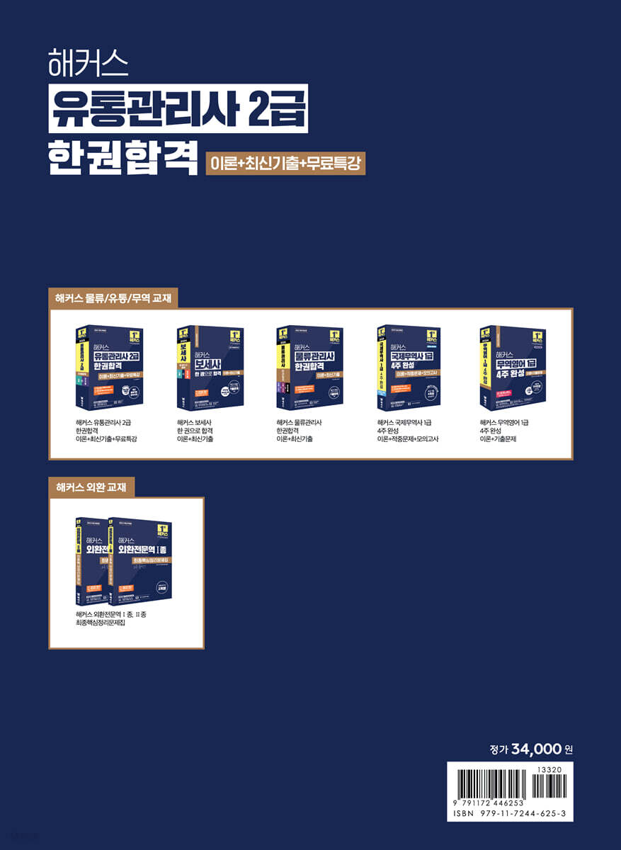 주간동아 선정 2022 올해의 교육 브랜드 파워 온·오프라인 금융자격증 부문 1위 핵심이론부터 최신기출까지 유통관리사 2급 한 권으로 완성! [이런 분들에게 추천합니다] 1. 핵심이론부터 최신기출까지 한 권으로 학습하고 싶은 분들 2. 최근 출제경향을 파악해 유통관리사 2급 시험에 단기 합격하고 싶은 분들 3. 풍부한 기출문제와 기출해설 무료특강으로 유통관리사 2급 시험에 빈틈없이 대비하고 싶은 분들 [해커스 교재만의 특장점] 1. [이론]부터 [최신기출]까지 한 권으로 완성! 1) 이론 출제 가능성이 높은 핵심이론만 엄선하였으며, 중요한 이론은 한눈에 알아볼 수 있도록 표시했습니다. 또한, 이론에 기출 연도 및 회차를 표시하여 자주 출제되는 이론을 파악할 수 있고, ‘핵심개념 OX퀴즈’로 학습한 이론을 바로 점검할 수 있습니다. 2) 출제예상문제 기출 문제 중 출제 가능성이 높은 문제를 엄선하여 학습한 이론에 대한 이해도를 높이고, 실제 시험에 어떻게 출제되는지 파악할 수 있습니다. 3) 최신기출문제 ‘최신 5개년 기출문제’ 15회분으로 최근 출제경향을 파악하고 실전 감각을 극대화하며 최종 마무리할 수 있습니다. 2. 유통관리사 2급 학습 효과를 높이는 다양한 학습 콘텐츠! 1) 2주/5주 완성 학습플랜 단기간에 집중적으로 학습하는 ‘2주 완성 학습플랜’과 이론을 차근차근 학습하는 ‘5주 완성 학습플랜’ 중 상황에 맞는 학습플랜을 선택하여 효율적으로 학습할 수 있습니다. 2) 빈출 개념 요약집(별책부록) 교재 이론 중 자주 출제되는 빈출 이론을 정리하여, 빈출 개념만 빠르게 복습하고 시험 직전 최종 점검할 수 있습니다. 3) 빈출문제 180선(PDF) 기출문제 중 자주 출제되는 180문제를 엄선하여 출제경향을 파악하고 자주 출제되는 중요 개념을 한 번 더 짚고 넘어갈 수 있습니다. 4) 무료 바로 채점 및 성적 분석 서비스 최신기출문제 ‘정답 및 해설’에 수록된 QR코드로 손쉽게 정답을 채점하여 응시 인원 대비 성적 위치를 확인하고, 합격 가능성을 예측할 수 있습니다. [유통관리사 2급 합격을 위한 해커스만의 추가 학습 콘텐츠 - 해커스금융(fn.Hackers.com)] 1. 본 교재 인강(교재 내 할인쿠폰 수록) 2. 최근 2개년도 기출해설 무료특강 3. 이론정리+문제풀이 무료 인강 4. 빈출문제 180선(PDF) 5. OMR 답안지(PDF) 6. 무료 바로 채점 및 성적 분석 서비스 |