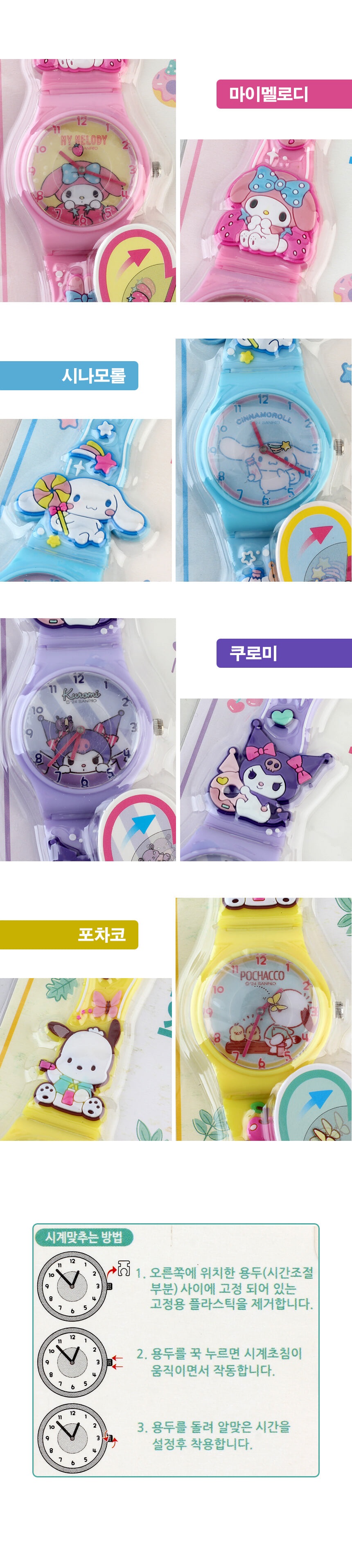 산리오 쁘띠 워치/캐릭터 마이멜로디 쿠로미 시나모롤 포차코 바늘 패션 시계