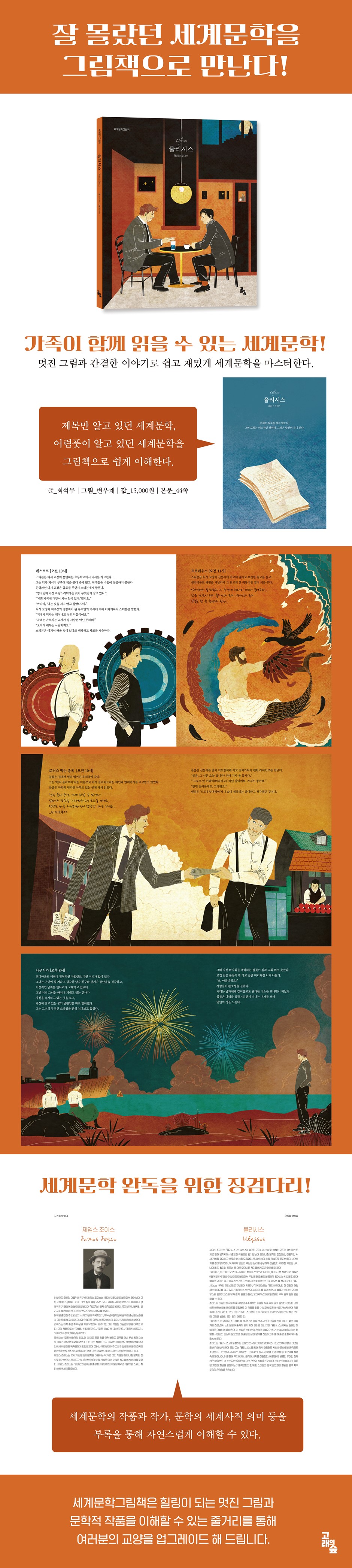 그의 오류는 의도적인 것이며, 그것은 발견의 문이 된다. 20세기 모더니즘 문학의 거장 제임스 조이스가 고대의 『오디세이아』를 모티브로 하여, 하룻동안 한 도시 아일랜드 더블린에서 인간 심연의 무한한 탐험을 가능케 하고 문학의 모든 경계를 넘은 작품, 『율리시스』를 그림책으로 만나보자! 제임스 조이스의 『율리시스』는 1922년에 출간된 모더니즘 문학의 대표작으로, 전통적인 서사 기법을 파괴하고 혁신적인 문체를 도입함으로써 문학사에서 중요한 위치를 차지한다. 특히, 의식의 흐름 기법을 통해 등장인물들의 내면세계를 깊이 있게 탐구하며, 복잡한 인간 심리를 생생하게 전달한다. 조이스는 고대 그리스의 서사시 『오디세이아』를 현대적으로 재해석하여 1904년 6월 16일 하루 동안 더블린에서 벌어지는 주인공 레오폴드 블룸의 여정을 그린다. 이 작품은 18개의 에피소드로 구성되어 있으며, 각 에피소드는 『오디세이아』의 한 장면을 대응하는 이야기로 풀어낸다. 작품 속 부자, 부부 관계는 블룸과 스티븐, 오디세우스와 텔레마코스, 그리고 블룸과 몰리, 오디세우스와 페넬로페의 관계를 연결 짓는다. 『율리시스』는 난해한 문체와 풍부한 상징, 수수께끼로 가득 차 있어 다양한 해석을 가능하게 하며, 문학적 발견의 문을 열어준다. 이 소설은 당시 아일랜드 사회와 문화를 비판적으로 조망하면서 영국 제국주의, 아일랜드 민족주의, 종교, 성차별, 인종차별 등의 문제를 다루고 있어, 독자에게 사회적 메시지를 강하게 전달한다. 이러한 요소들로 『율리시스』는 전세계적인 작품이 되었으며, 조이스의 문학적 업적을 더욱 빛나게 하였다 『율리시스』를 더욱 돋보이게 하는 네 가지 포인트 1. 제임스 조이스의 문학을 전공하고 대학에서 오랫동안 강의한 저자가 원작의 문학적 깊이를 유지하면서 그림책에 맞게 쓴 글로 읽을 수 있다. 2. 등장 인물들의 복잡한 감정선과 상징적 요소들을 시각적으로 표현한 그림을 보면서 읽을 수 있다. 3. 작가, 작품, 그 시대의 배경에 대한 이해를 돕는 전문가가 쓴 풍성한 해설을 볼 수 있다. 4. 제임스 조이스가 전하고자 한 아일랜드 사회와 문화에 대해 생각해 볼 기회를 제공한다. 『율리시스』는 1904년 6월 16일 하루 동안 아일랜드 더블린에서 벌어지는 이야기를 그린다. 주인공은 레오폴드 블룸, 유대인 광고 세일즈맨이며, 그의 하루는 고대 그리스의 서사시 『오디세이아』의 영웅 오디세우스의 여정에 빗대어 표현된다. 소설은 스티븐과 블룸의 아침을 시작으로 더블린에서 겪는 일상적인 사건들을 따라간다. 이 과정에서 블룸은 다양한 인물들과 만나며, 그의 사고와 감정이 드러난다. 스티븐 디달러스라는 젊은 예술가로, 자신의 예술적, 철학적 고민을 드러내면서 블룸과 교차된다. 블룸과 스티븐은 각자의 일상을 보내다가 저녁 늦게 만나게 되며, 대화를 통해 서로를 이해하는 과정을 갖게 된다. 여성의 성적 자율성과 복잡한 감정을 담은 블룸의 아내 몰리의 독백으로 마무리된다. 『율리시스』는 전통적인 서사 구조를 벗어나, 의식의 흐름 기법을 통해 인물들의 심리적 깊이와 시간의 흐름을 독특하게 표현하며, 일상의 소소한 순간들에서 인간 존재의 근본적 질문을 독자들에게 던진다. 이 작품은 독자에게 깊은 사유를 요구하며, 동시에 아일랜드 사회에 대한 깊은 통찰과 비판을 담은 작품이다. |