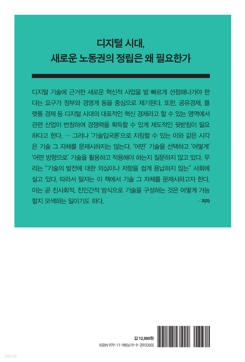 디지털 기술에 근거한 새로운 혁신적 사업을 발 빠르게 선점해나가야 한다는 사회적 요구가 거세다. 이른바 공유경제, 플랫폼 경제 등 디지털 시대의 대표적인 혁신 경제는 빠르게 성장하고 있다. 그러나 이러한 흐름 속에서 ‘기술’ 그 자체를 문제시하는 시각은 주목을 받지 못한다. 저자에 따르면 우리는 “기술의 발전에 대한 의심이나 저항을 쉽게 용납하지 않는” 사회에 살고 있다. 저자는 이 책에서 디지털 시대 기술적 패러다임의 특징과 산업 영역에서 나타나는 노동의 변화를 디지털화, 초연결성, 플랫폼, 공유경제를 중심으로 살펴본다. 디지털화(digitization)가 자연과 사회의 모든 현상, 움직임, 활동을 0과 1이라는 숫자에 기반해 데이터로 만드는 기술이라고 한다면, 초연결성은 사람과 사물, 생물과 무생물 등 세상의 주체와 대상들을 상호연결하여 데이터에 기반한 새로운 기회, 사업을 창출하는 기반이다. 플랫폼은 그러한 자원들을 모으고 연결하고 데이터를 생성할 수 있는 무대이자 틀이며, 공유경제는 자본주의 시장 외곽에 존재하던 자원들을 데이터화하고 수익을 창출할 수 있도록 시장으로 끌어들이고 연결하는 상품화 과정이다. 저자는 오늘날 디지털 기술의 잠재력과 사회적 파급효과를 검토함과 동시에 디지털 시대의 노동권 후퇴를 극복할 수 있는 대안으로서 기술에 대한 ‘사회 구성론적 접근’, 즉 기술을 사회적 과정의 일종으로 보면서 기술 변화의 과정에 정치적, 경제적, 조직적, 문화적 요소가 어떻게 개입하는지를 분석해야 한다고 말한다. 또한 디지털 기술에 대한 ‘인간 통솔’의 원리를 제기한다. 인간의 노동에 영향을 미치는 기술에 대한 최종 결정은 인간이 내려야 하며, 자본주의적 이윤이 아니라 인간의 필요에 기반해 기술이 작동해야 한다는 것이다. 나아가 기술에 대한 인간의 통제를 유지하는 가운데 이윤이 아니라 자유시간 극대화 원리에 따라 기술 개발이 이뤄져야 한다고 주장한다. 디지털 시대, 노동권의 후퇴와 상실 노동의 탈경계화는 노동의 시공간 경계, 고용과 비고용의 경계가 모호해지는 현상이다. 임금노동 영역 외부에서 독자적 사업을 수행하던 자영업자가 사용자에 종속된 임금노동자와 유사하게 변화하는 경향은 갈수록 두드러지고 있다. 동네에서 점포를 운영하던 자영업자들은 어느덧 대기업 프랜차이즈 가맹본부에 종속된 가맹점주가 되고, 플랫폼 노동 등 고용과 자영의 경계가 모호한 영역에서 비고용 형식의 새로운 노동형태가 확산되고 있다. 문제는 노동의 경계가 무너지면서 자본주의적 노동이 사라지는 것이 아니라 실질적으로는 임금노동, 고용된 노동과 유사한 일을 수행하면서도 탈경계화로 임금노동의 형식이 모호해져 임금노동자, 고용된 노동자가 자신이 행사할 수 있는 권리로부터 배제된다는 데 있다. 나아가 고용에 따르는 사회적 권리인 노동권이 해체되거나 그로부터 배제되는 노동이 확대되고 있다는 것이 문제이다. 이런 점에서 저자는 오늘날 나타나는 노동의 탈경계화는 노동의 종말 혹은 탈노동 사회로의 진입이 아니라 오히려 노동의 불안정성이 심화되는 현상을 낳고 있다고 진단한다. 저자는 이러한 노동의 탈경계화는 디지털 시대 노동권의 후퇴를 의미하고 노동자 정체성의 약화로 이어진다는 점을 지적한다. 즉 임금노동, 고용의 형식이 모호해지고, 그로 인해 노동과 결부된 권리로부터 배제된 노동이 확산되면, 해당 노동자들이 자신의 일자리에 대해 갖는 애착이 떨어질 수밖에 없고 노동권을 보장받는 노동이 줄어들며, 권리를 상실한 노동자층이 확장되면서 결국 노동권의 상실로 이어진다는 것이다. 노동의 탈경계화와 임금 중심 사회의 위기 노동의 탈경계화는 임금노동을 근거로 사회적 권리를 부여하던 사회적 틀을 흔든다. 즉 임금노동의 형식이 모호해지면서 임금노동과 결합해 온 사회적 보호망에서 노동자들을 배제한다. 실제로 코로나19 팬데믹 국면에서 우리는 고용이 명확하지 않은 상당수의 노동자들이 제도적 보호의 ‘사각지대’에 놓이게 되면서 생존의 위험에 내몰리는 상황을 지켜보았다. 한편 고용형식이 모호한 노동자들에게 임금노동자의 권리를 부여하기 위해 ‘노동자성’ 인정 여부가 관건이 되면서, 언젠가부터 이를 둘러싼 공방이 주요 현안으로 떠올랐다. 이렇게 우리는 노동시장 유연화에 따라 노동이 불안정화되고 노동권과 사회적 보호로부터 제외되는 노동자들이 늘어나는 사회에 들어섰다. 물론 임금노동 형식 자체가 의문시되는 노동도 늘어나고 있다. 따라서 자본주의 임금노동 관계에 근거한 사회 조직화와 운영이 점차 어려워지는 상황에서 임금노동자의 지위를 근거로 권리가 부여되는 임금 중심 사회는 위기에 빠질 수밖에 없다. 저자는 임금 중심 사회가 위기에 빠진 상황에서는 임금노동을 중심으로 구성된 노동권을 회복하는 것을 넘어, 탈경계화된 노동자 집단을 포괄할 수 있도록 노동권의 내용과 포괄범위를 확장하는 방안을 모색할 필요가 있다고 말한다. 노동권을 임금노동에 국한되지 않는 것으로 확장할 필요가 있는 것이다. 이 책의 구성과 내용 1장에서는 