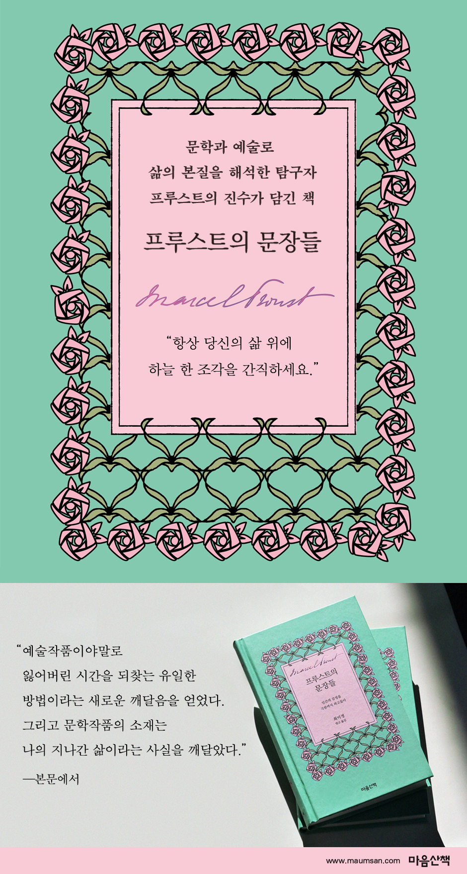 이 책에 인용된 저작물과 편지들 I 문학과 예술에 관하여 II 애정을 담아 III 정신 너머의 세계 IV 동시대 시민으로 V 감정과 정념의 인간 VI 자연과 묘사에 관하여 마르셀 프루스트 연보 참고 문헌 |