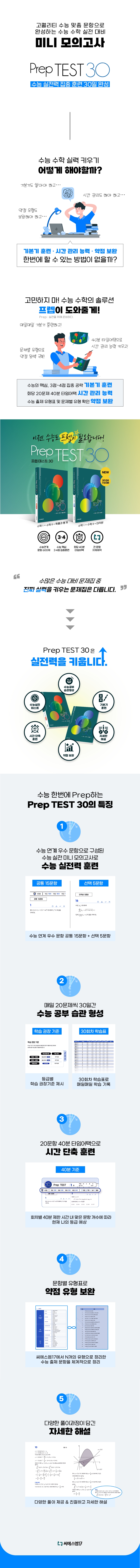 완벽한 수능 미니모의고사 Prep Test 30은 최근 수능을 철저히 분석 후, 실전 대비에 최적화하여 출시되었습니다. 최근 수능의 출제 경향을 살펴보면 준킬러 이전까지의 문제들은 실수 없이 빠르게 맞추어야 하고 준킬러와 세미킬러 수준의 문제들로 변별력을 높이고 있습니다. 따라서 준킬러까지의 점수 확보 및 시간 관리 능력을 필수적이며, 이번 30회의 Prep TEST를 통해 "세미킬러" 이전 문제까지 기본기 훈련, 시간 단축, 실수 보완 등으로 본인의 약점을 빈틈없이 채울 것 입니다. Prep TEST 30은 1등급부터 5등급까지의 수험생에게 반드시 필요한 수능 실전대비 훈련서이며 이 책을 선택한 여러분에게 찰나의 시기 속 최고의 결과를 보답드리겠습니다. |